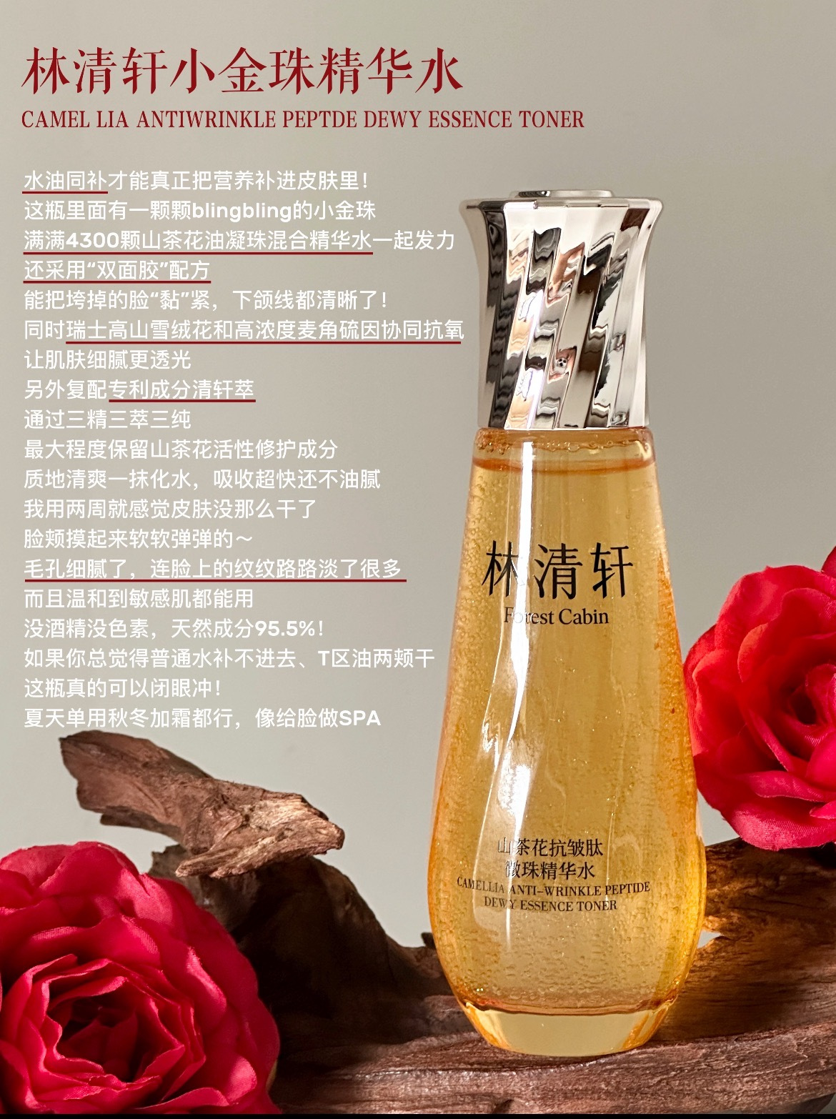 ‼️添加林清轩招牌成分山茶籽精粹15%精华油+85%精粹水组合