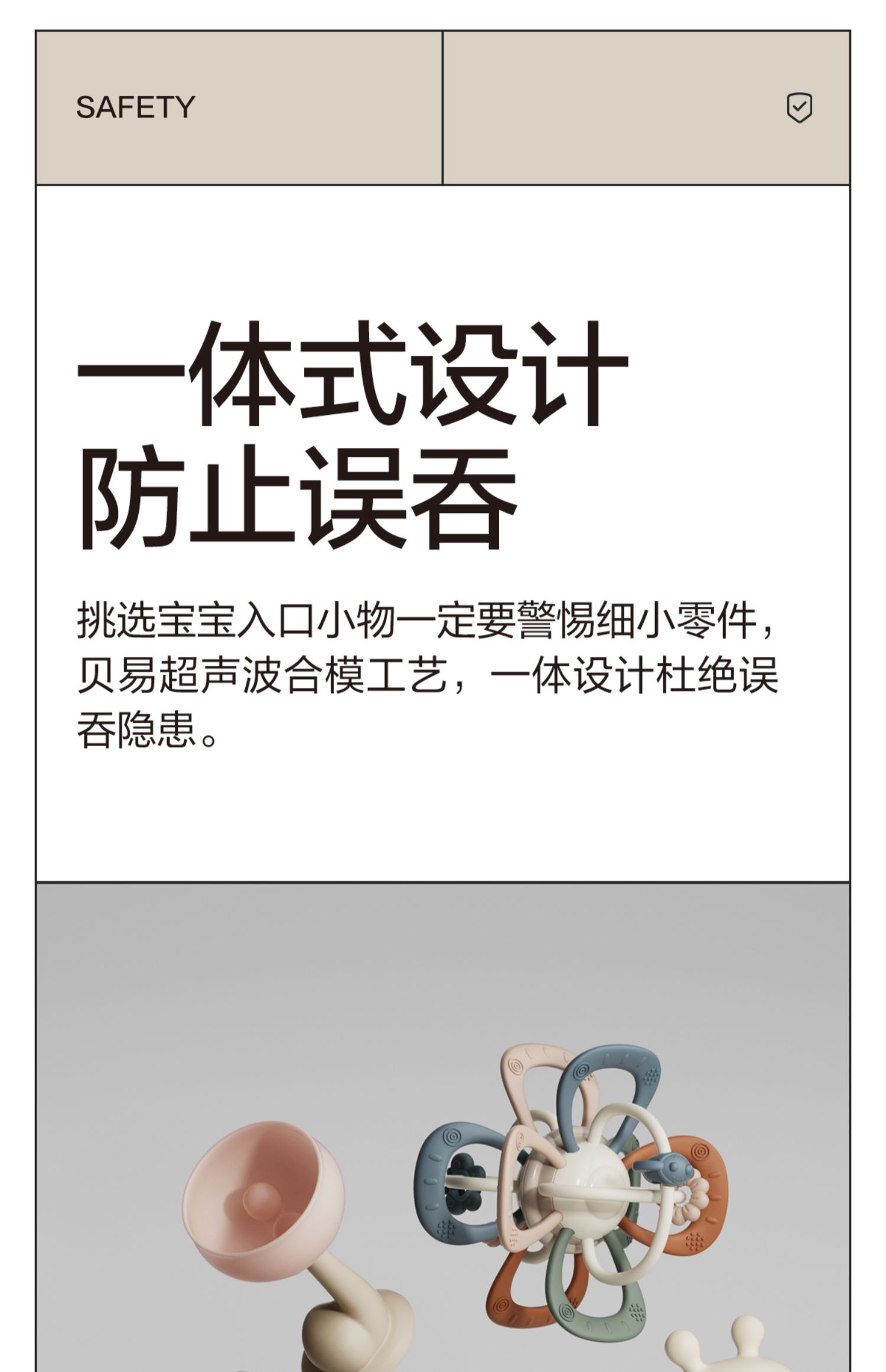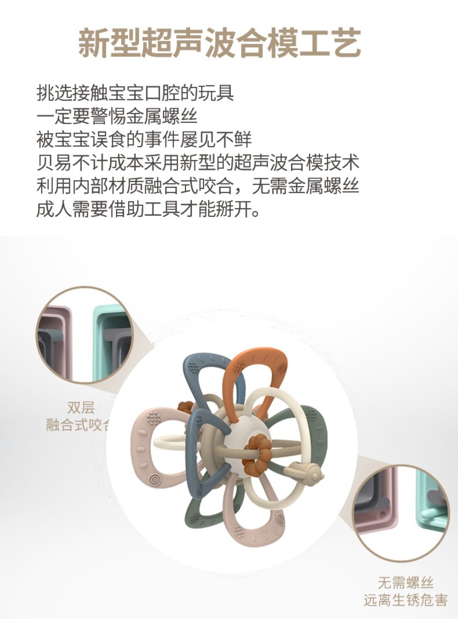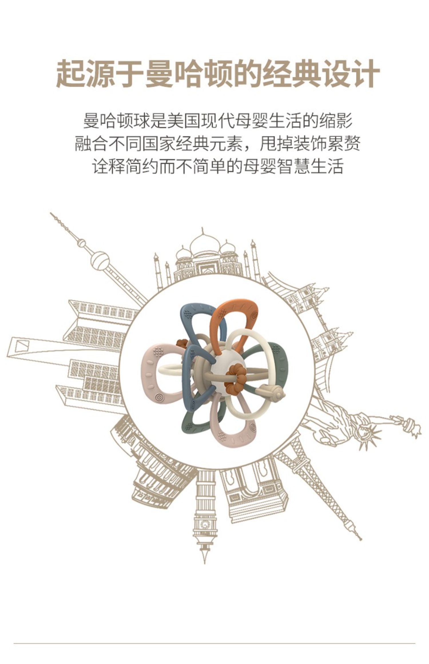 贝易曼哈顿手抓球咬咬牙胶磨牙棒婴儿宝宝防吃手6个月宝宝玩具