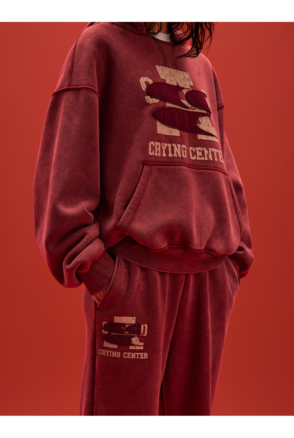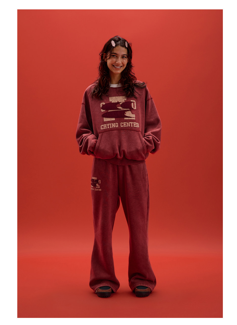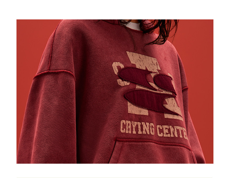 CryingCenter联名bofc 奥粒绒洗水做旧复古字母连帽卫衣