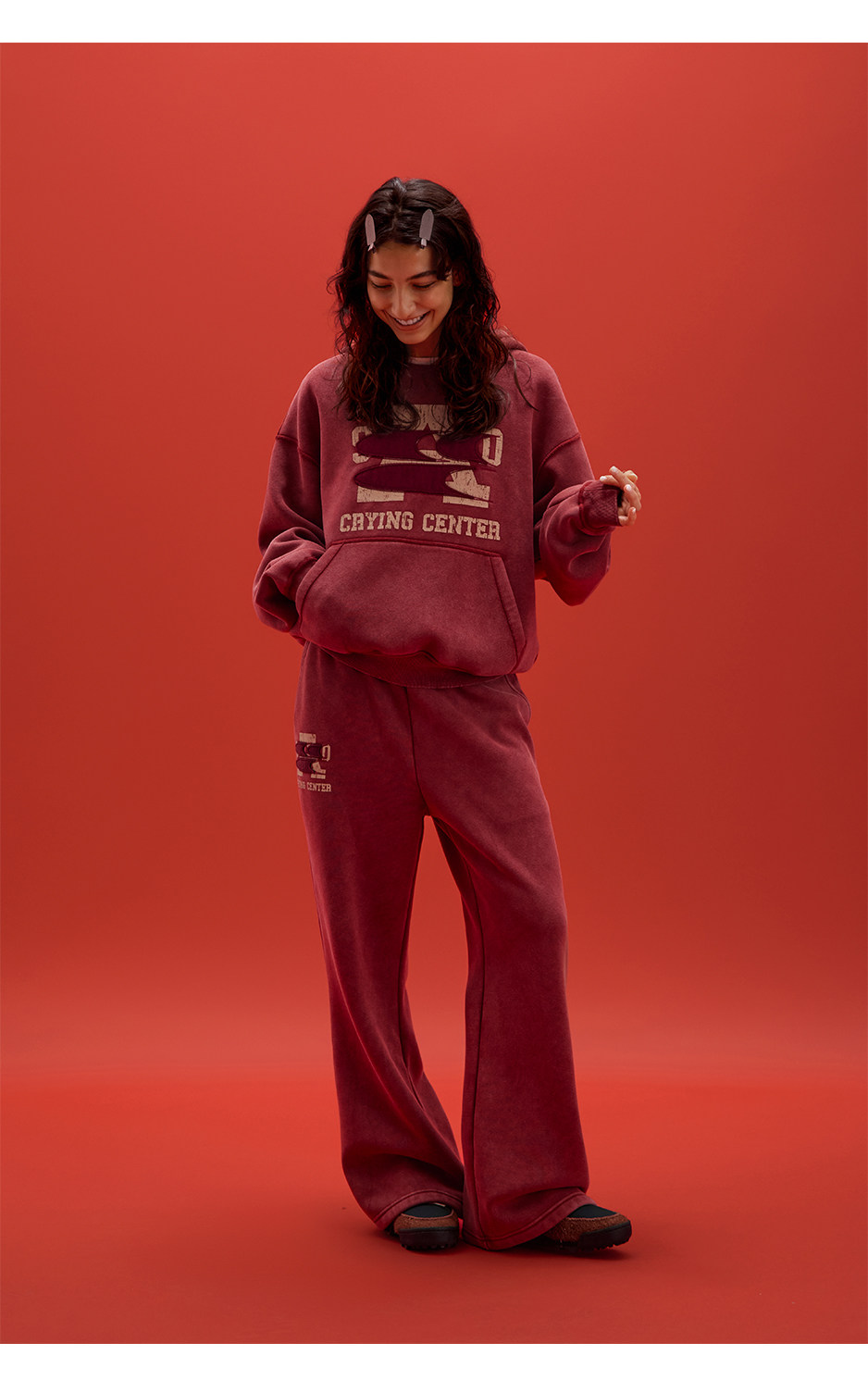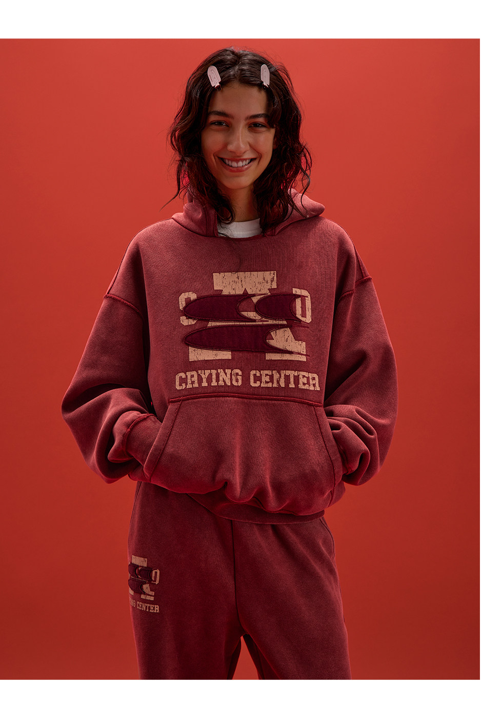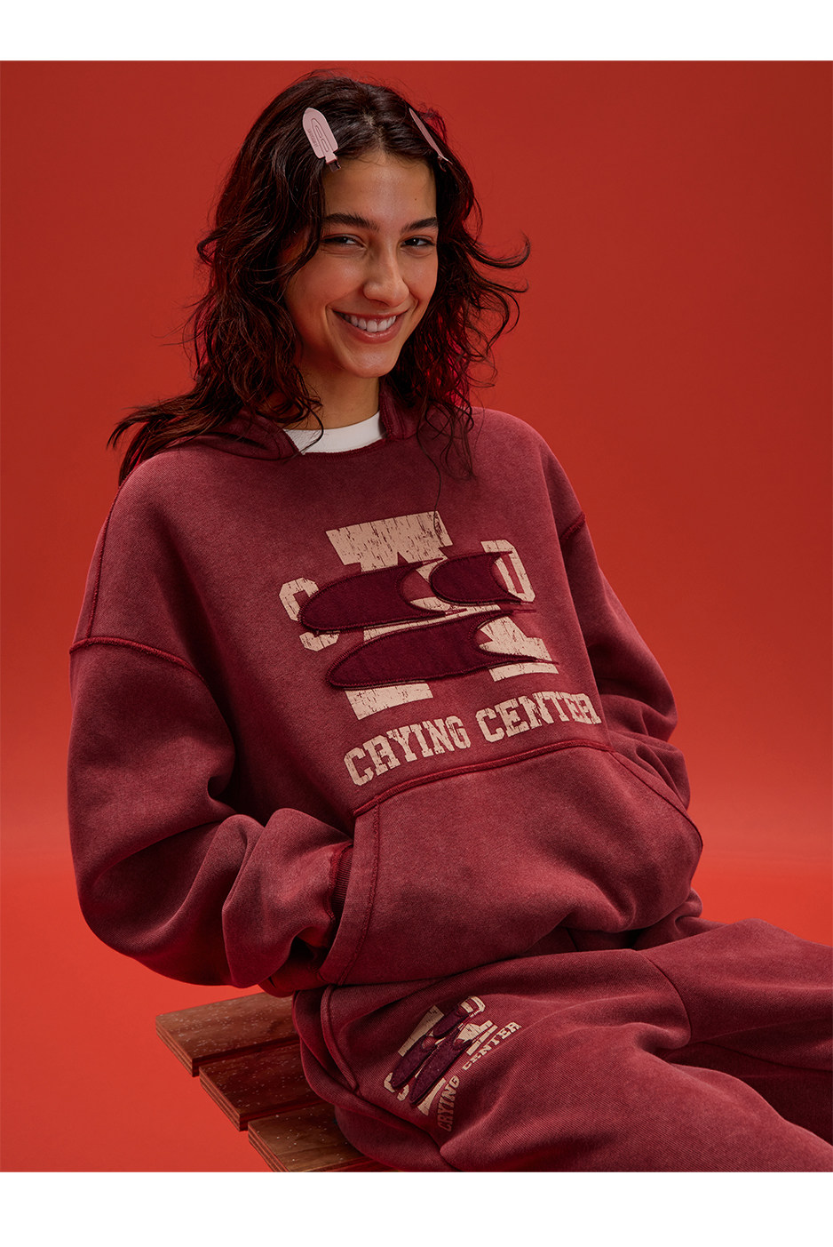 CryingCenter联名bofc 奥粒绒洗水做旧复古字母连帽卫衣