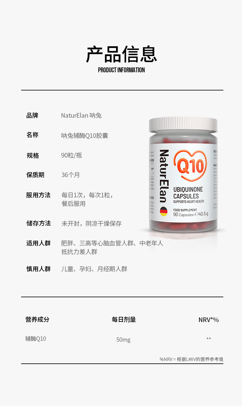 【专属活动】NaturElan呐兔 辅酶Q10 50mg升级版 90粒
