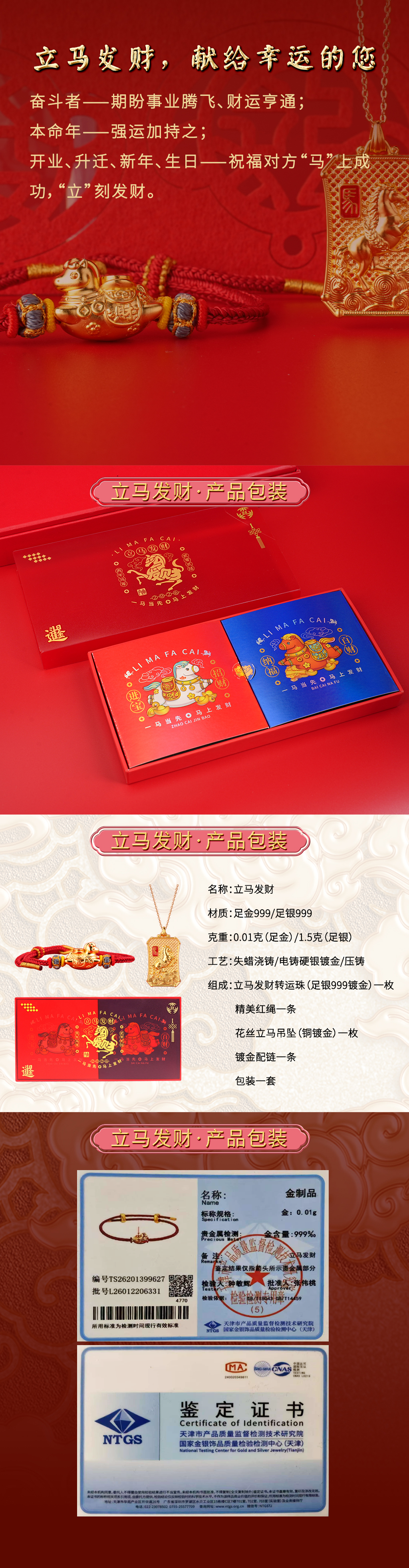 【立马发财手绳】足金小转盘 开启马年鸿运 下单就送马牌项链(2.14-2.25停发)