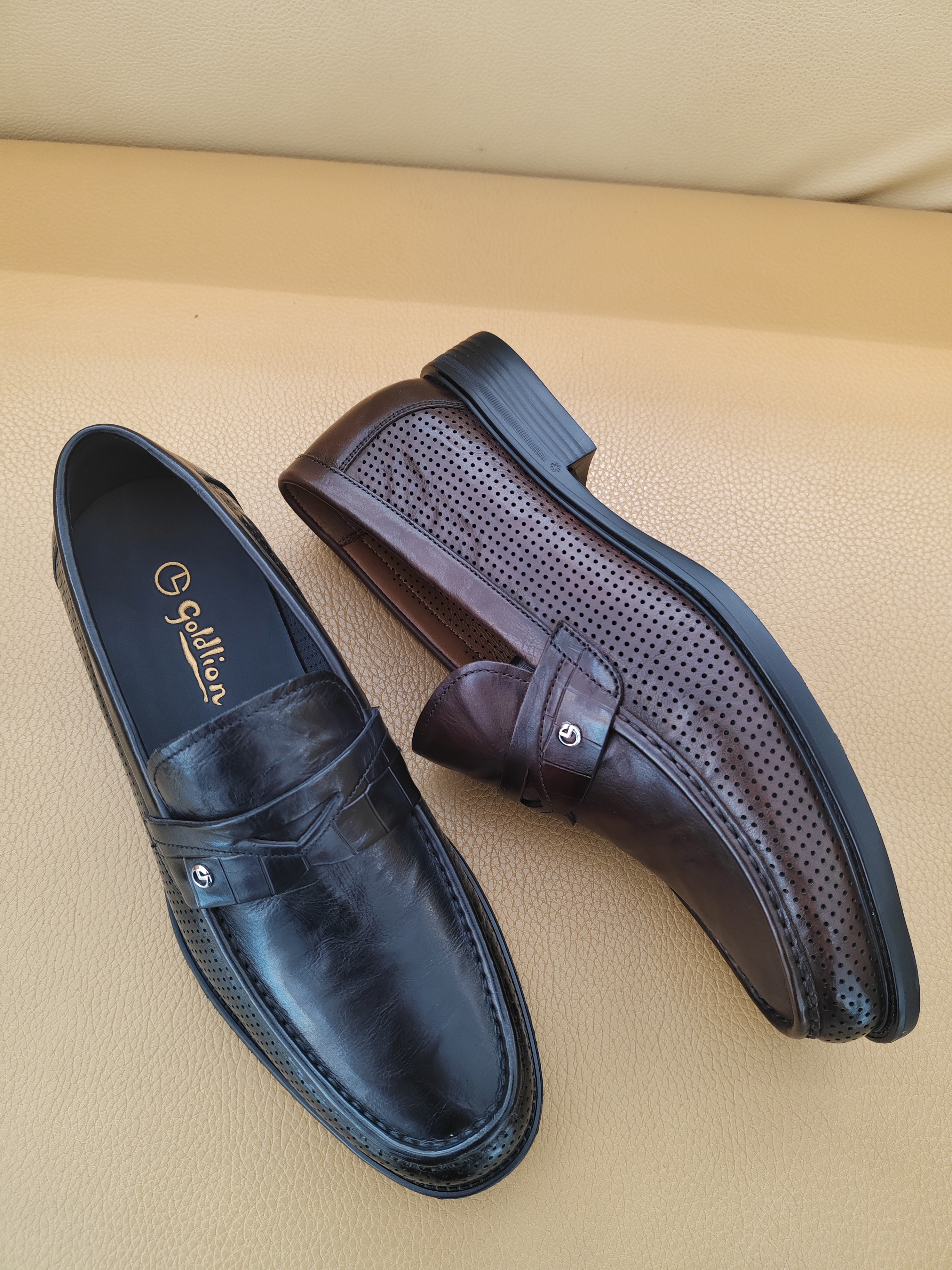 金利来皮鞋·时尚乐福款·精选牛皮·两侧冲孔设计·透气更佳·EPR打底轻便舒适