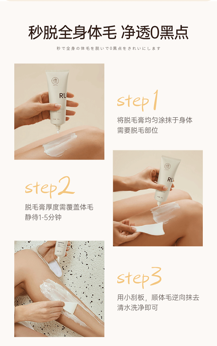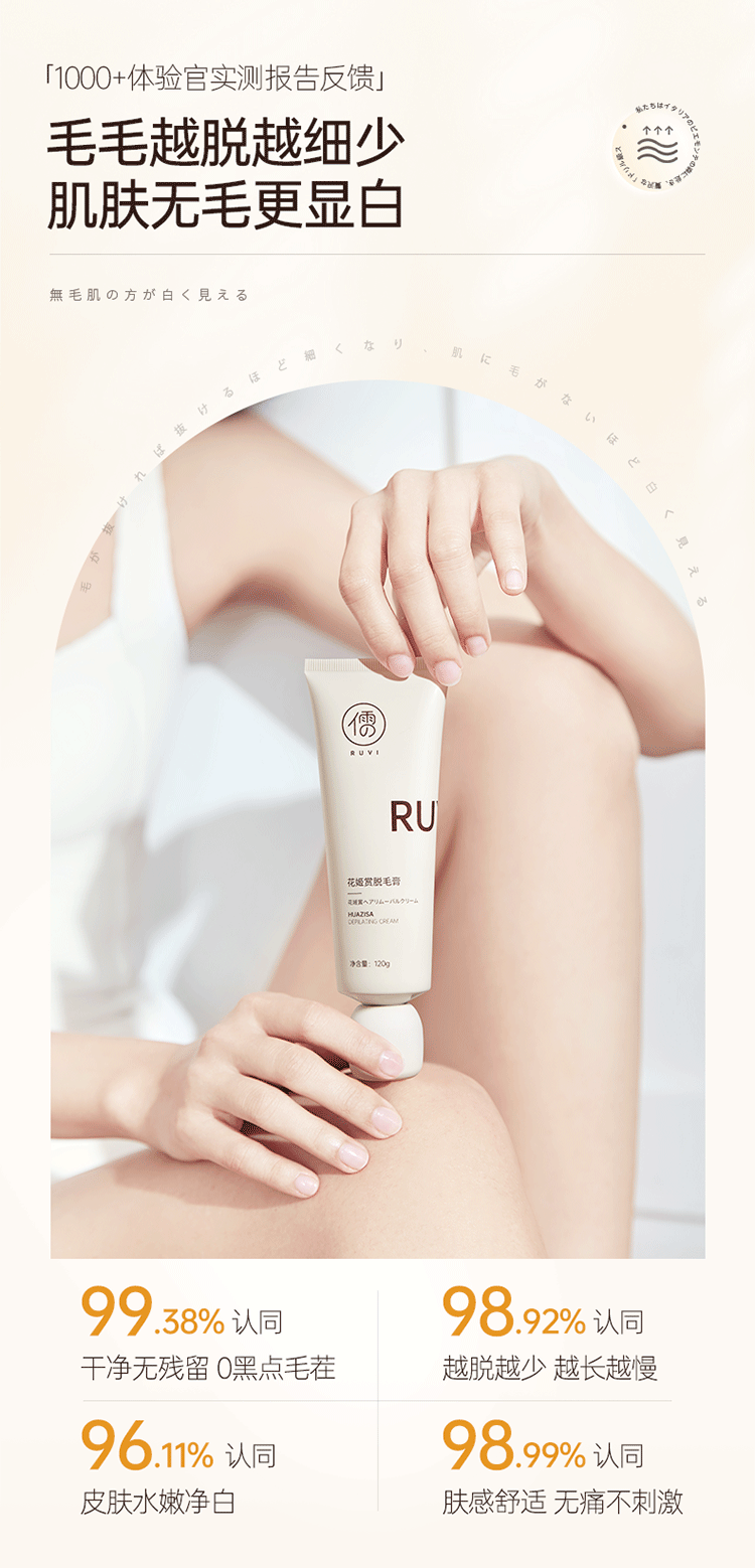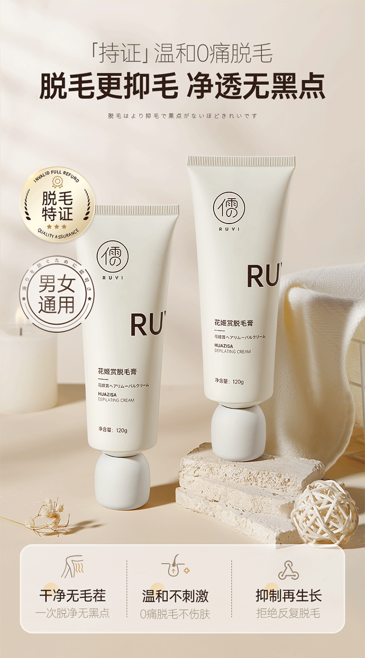【第二支6折 男女同款 进口脱毛成分 买2支赠送脱毛两件套(刮子、舒缓芦荟胶)】儒意花姬赏脱毛膏 全身可用不留黑点温和无痛去腋毛腿毛唇毛120g/支