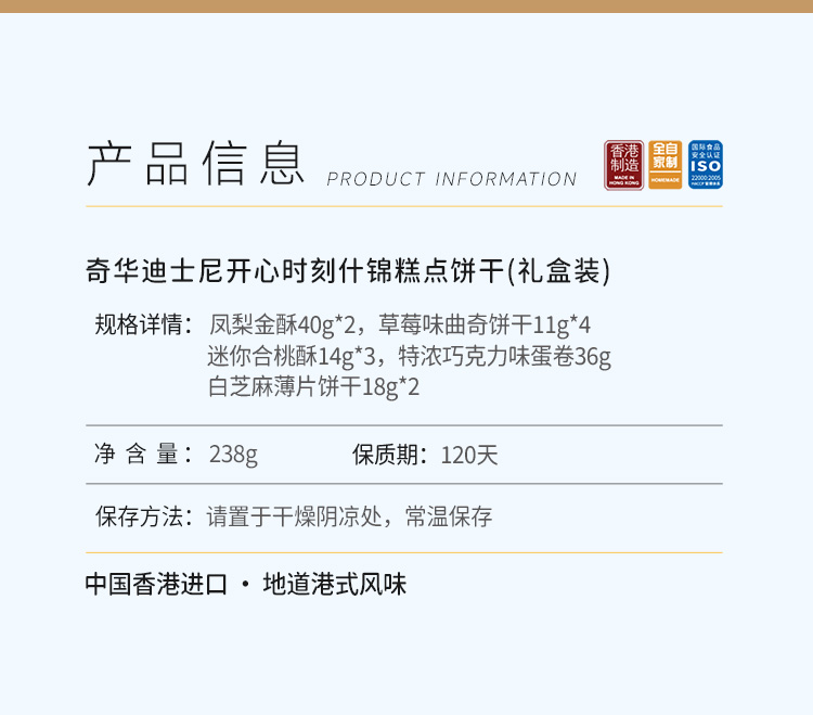 【奇华迪士尼开心时刻什锦糕点饼干】礼盒装蛋卷凤梨酥曲奇饼干休闲零食