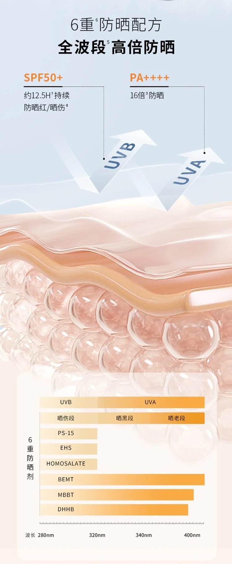 也就是短波段位UVB和长波段UVA都能有效防护!