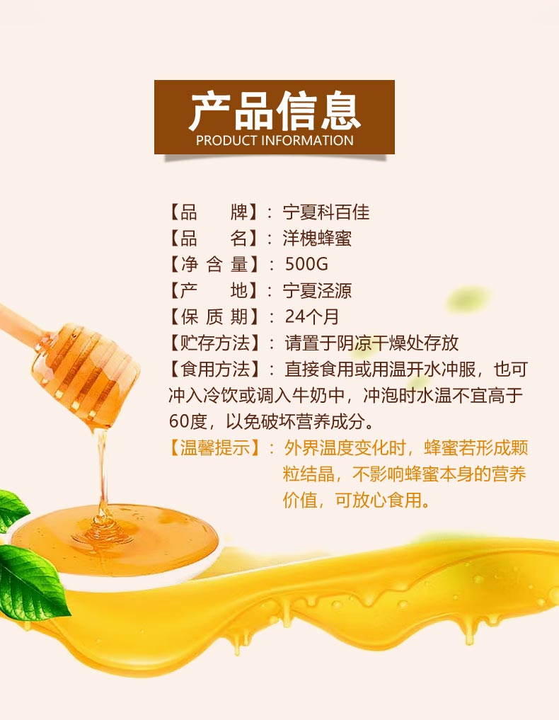 科百佳洋槐蜂蜜500g(KBJ)(仅限福建省内配送,满400元包邮)