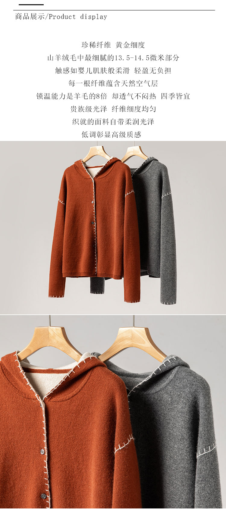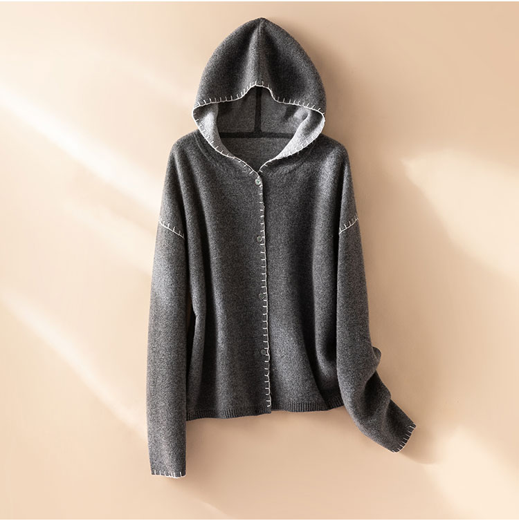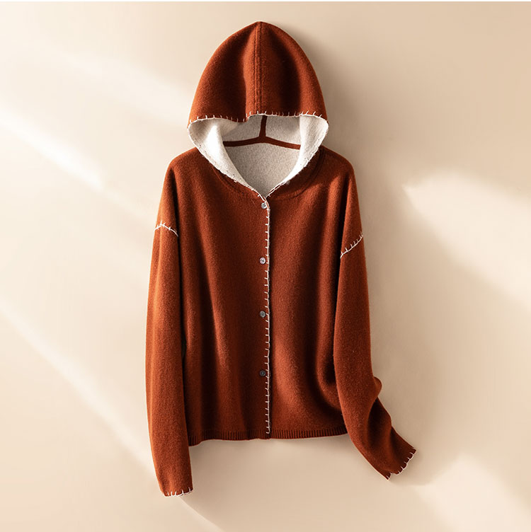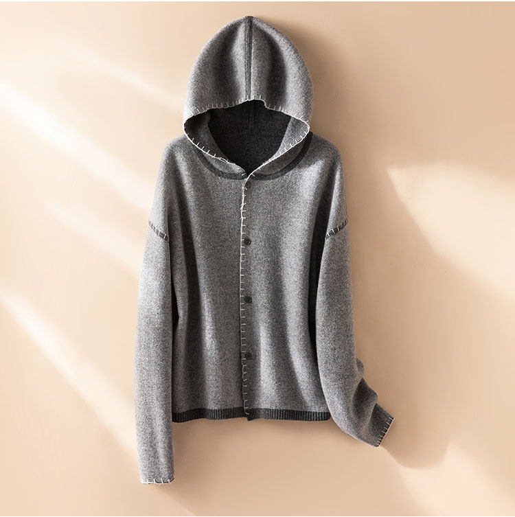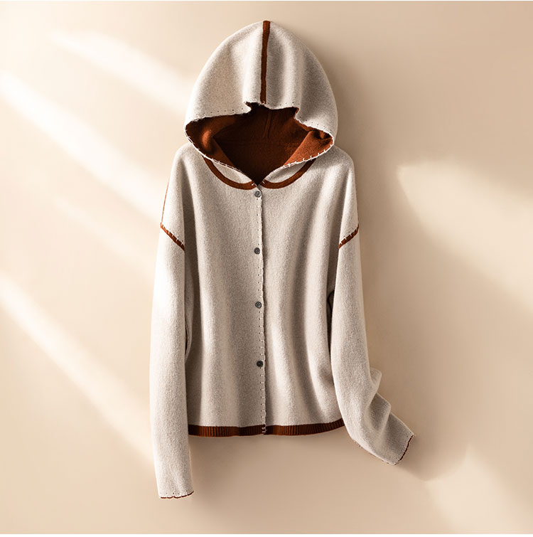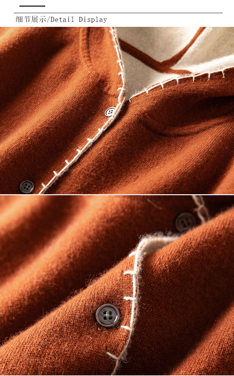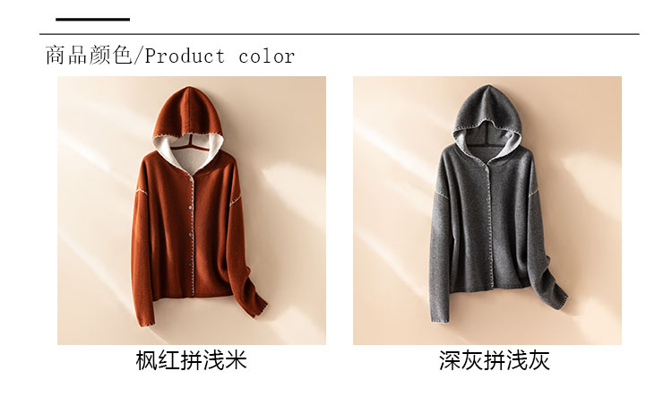 100%Baby小山羊绒~双面可穿连帽羊绒开衫外套女BABY250314