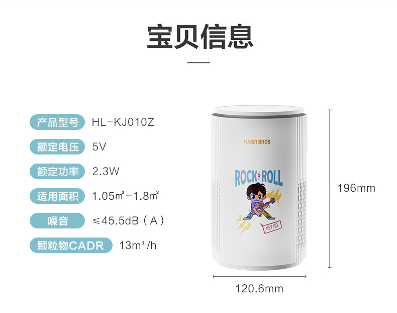 海尔兄弟桌面空净 空气净化器HL-KJ010Z
