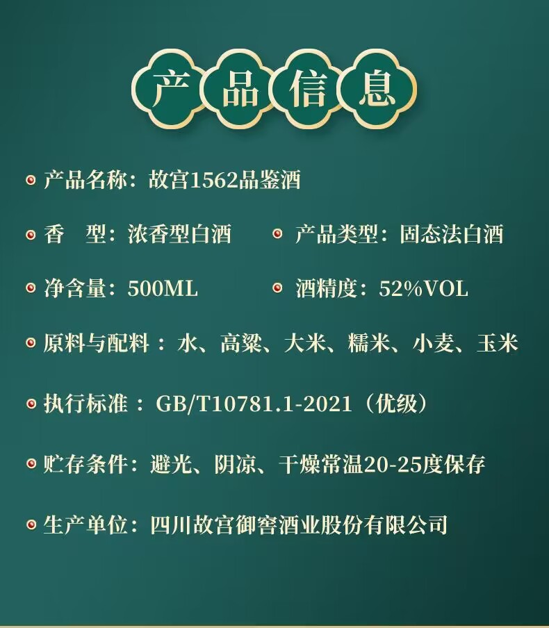 【断货王】 故宫1562 品鉴酒 52度 浓香型 500ml