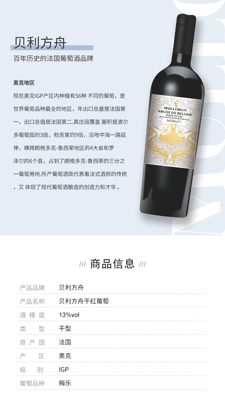 【6瓶装】贝利方舟法国进口干红葡萄酒2017年 13%vol 750ml/瓶