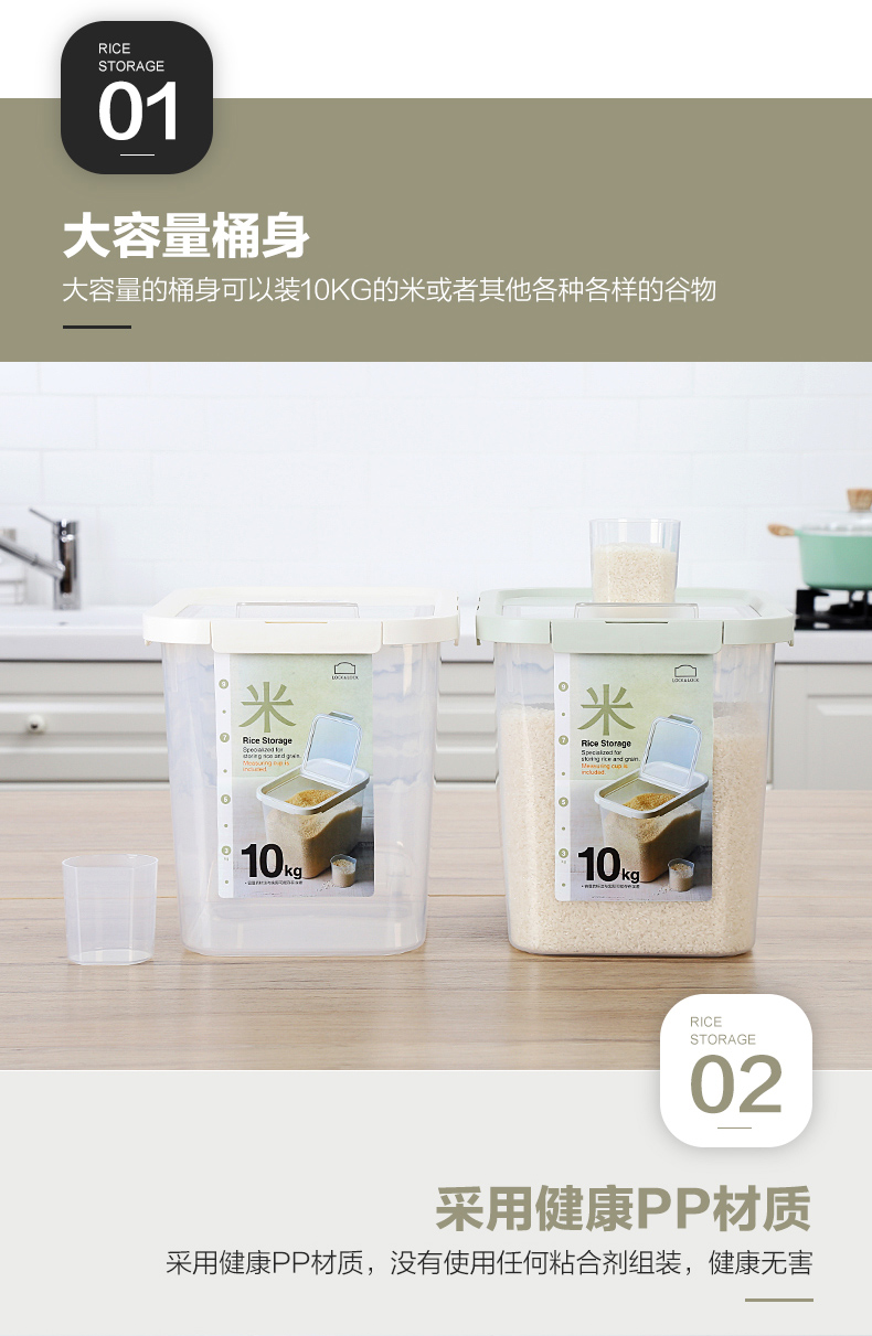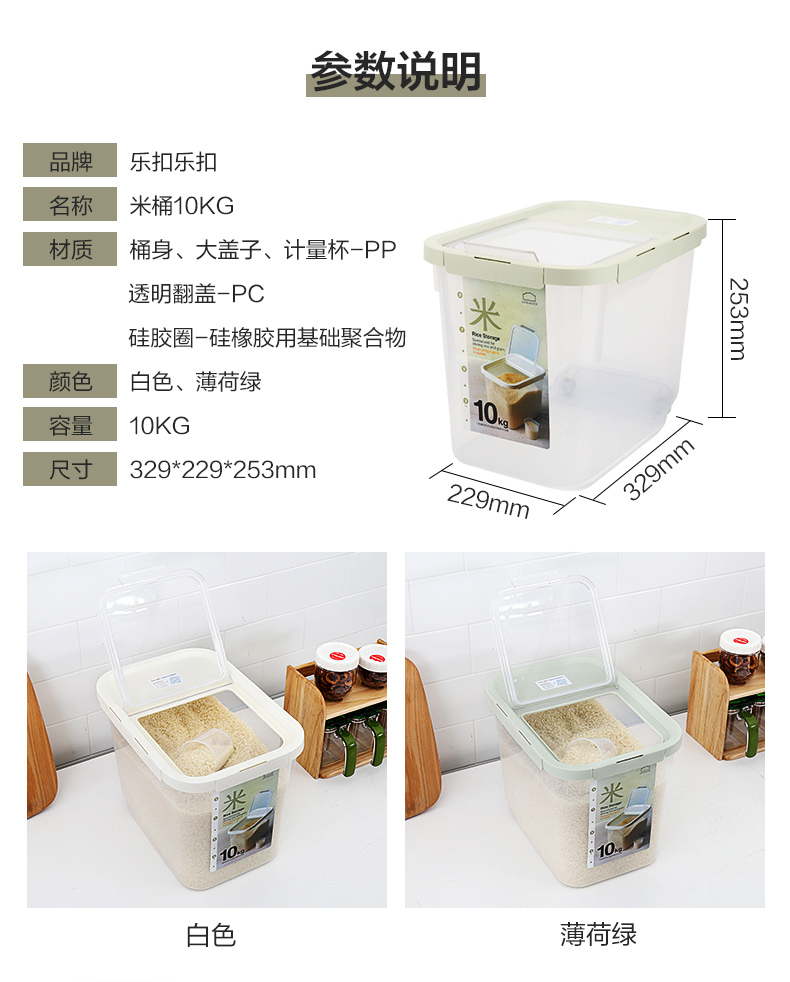 乐扣乐扣 米桶10kg塑料家用防潮防虫日式大号容量20斤装 HPL561