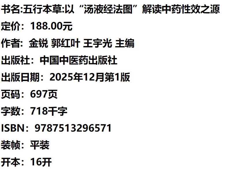 五行本草——以“汤液经法图”解读中药性效之源 金锐 郭红叶 王宇光 主编 中国中医药出版社