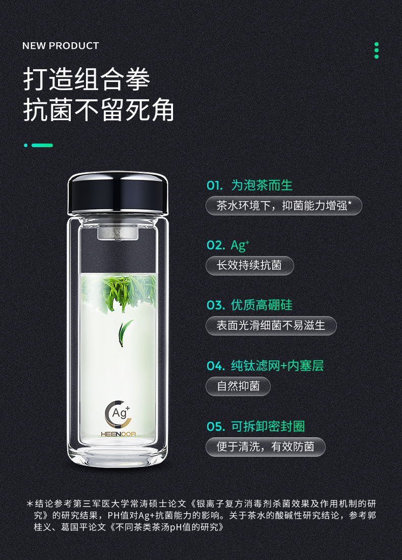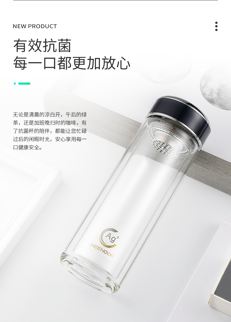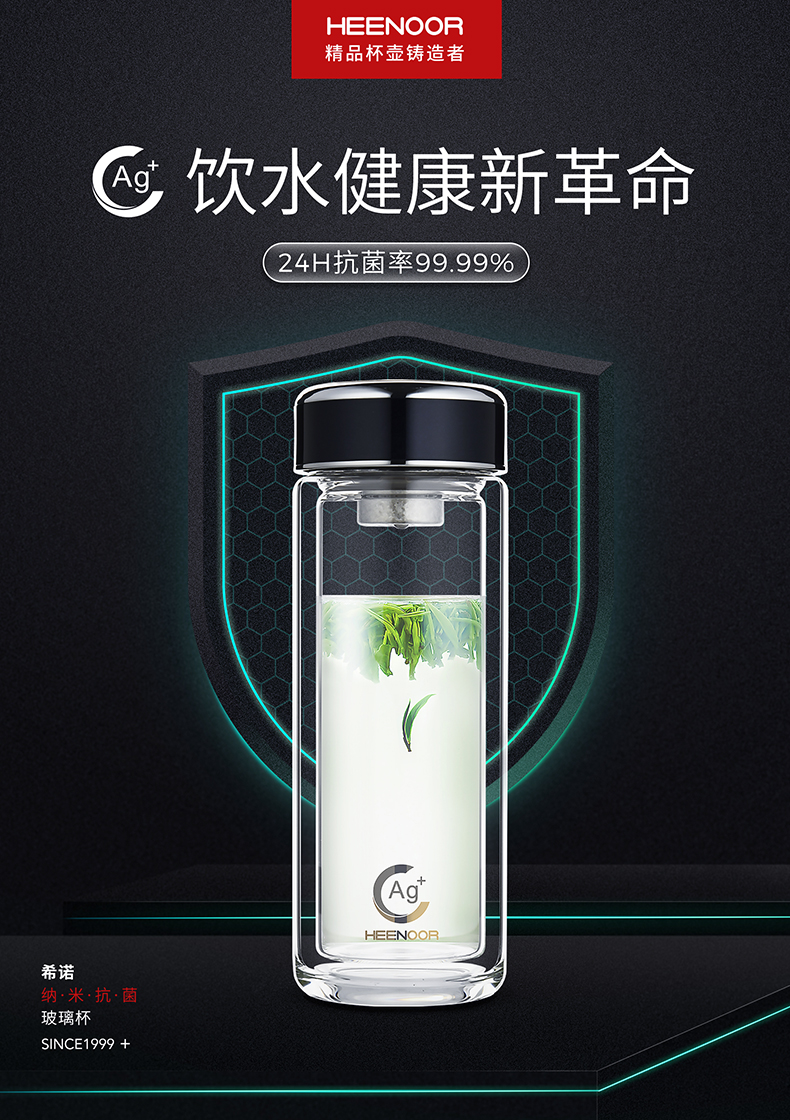 希诺 抗菌玻璃杯 双层隔热 360ML XN-1912