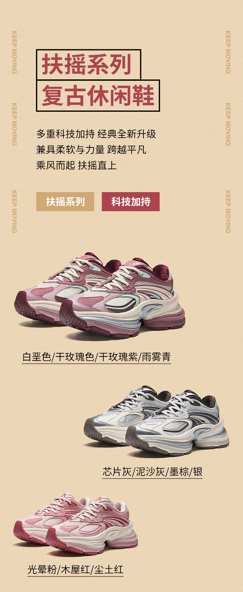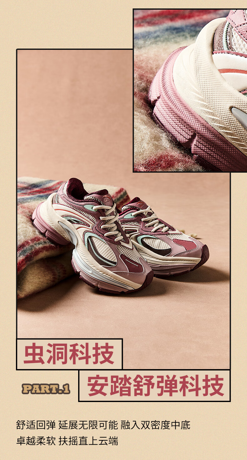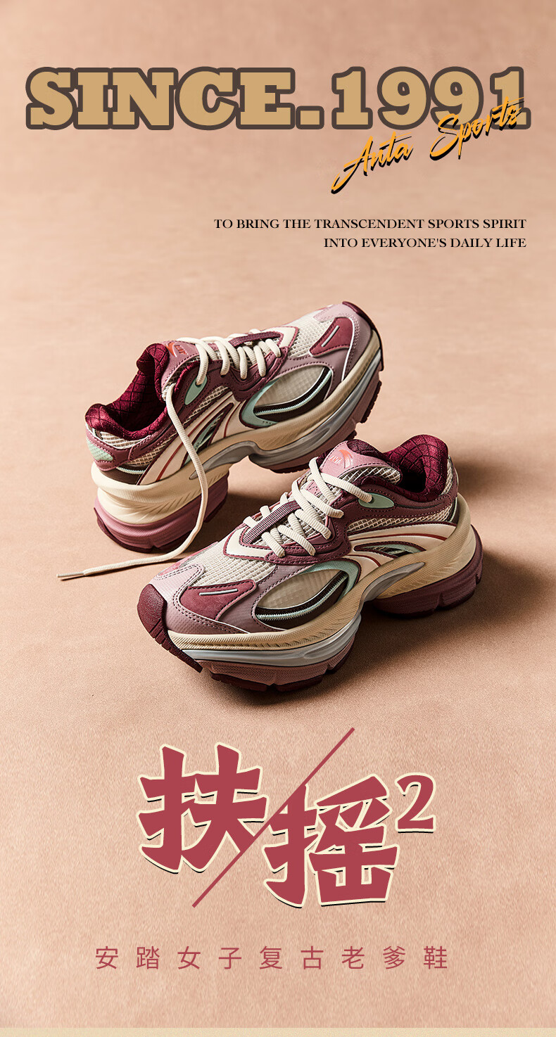 安踏扶摇2版丨老爹鞋女厚底增高复古潮流运动鞋休闲鞋122448899