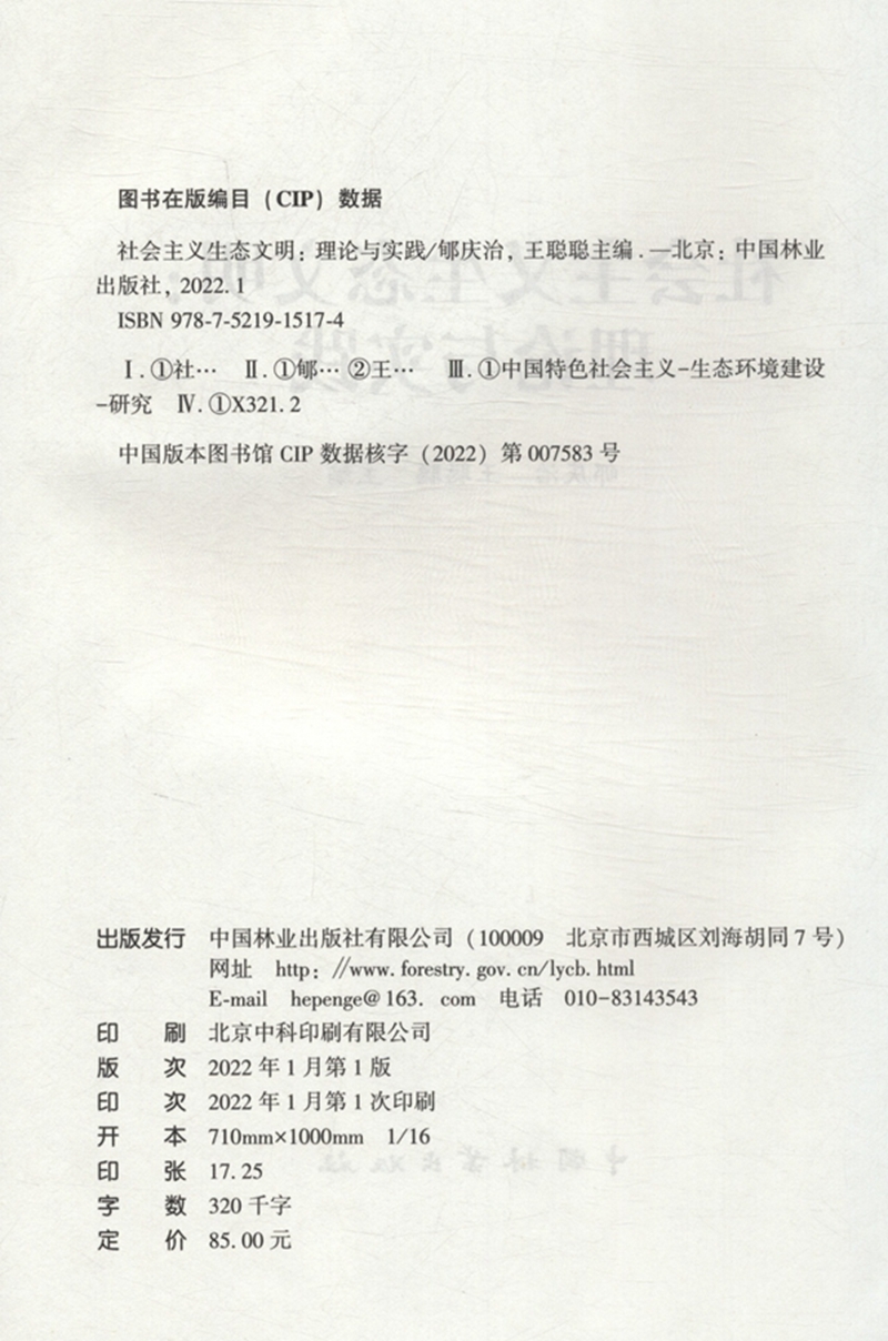 社会主义生态文明--理论与实践 郇庆治//王聪聪 1517 中国林业出版社