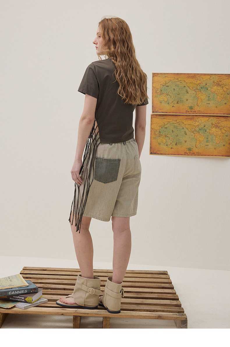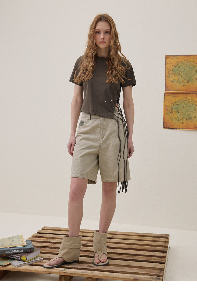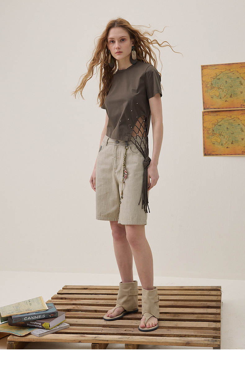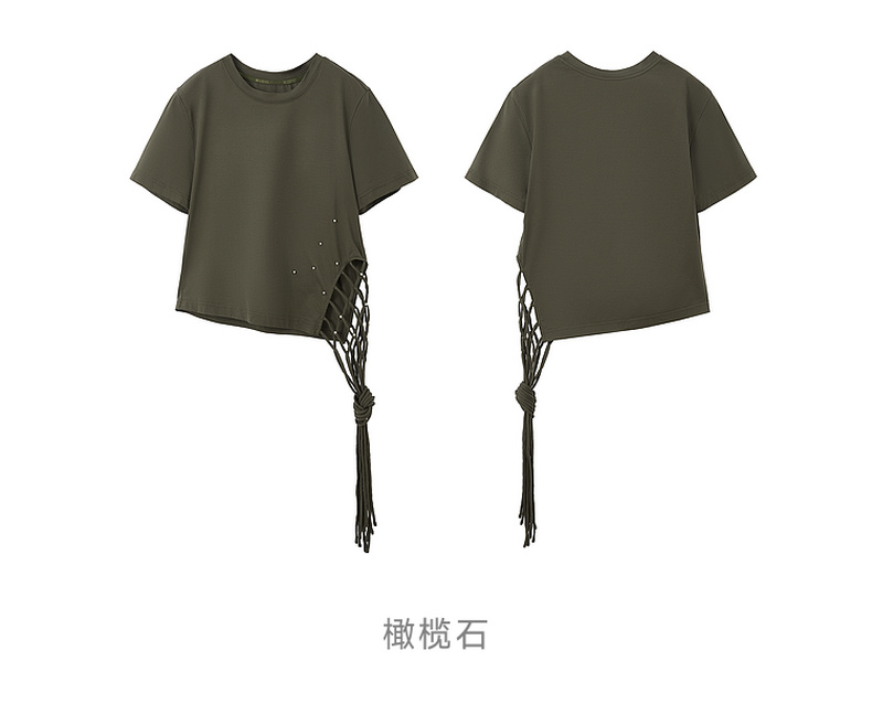 谜底编织绳T恤短袖2026年夏季新品贝壳珠子立体设计感女262MT0673