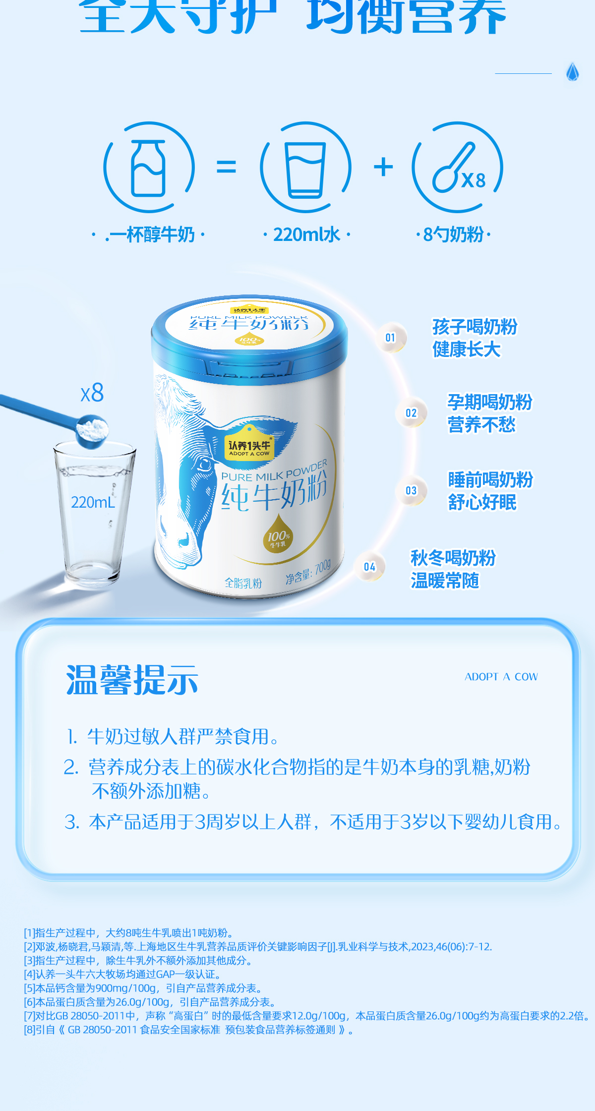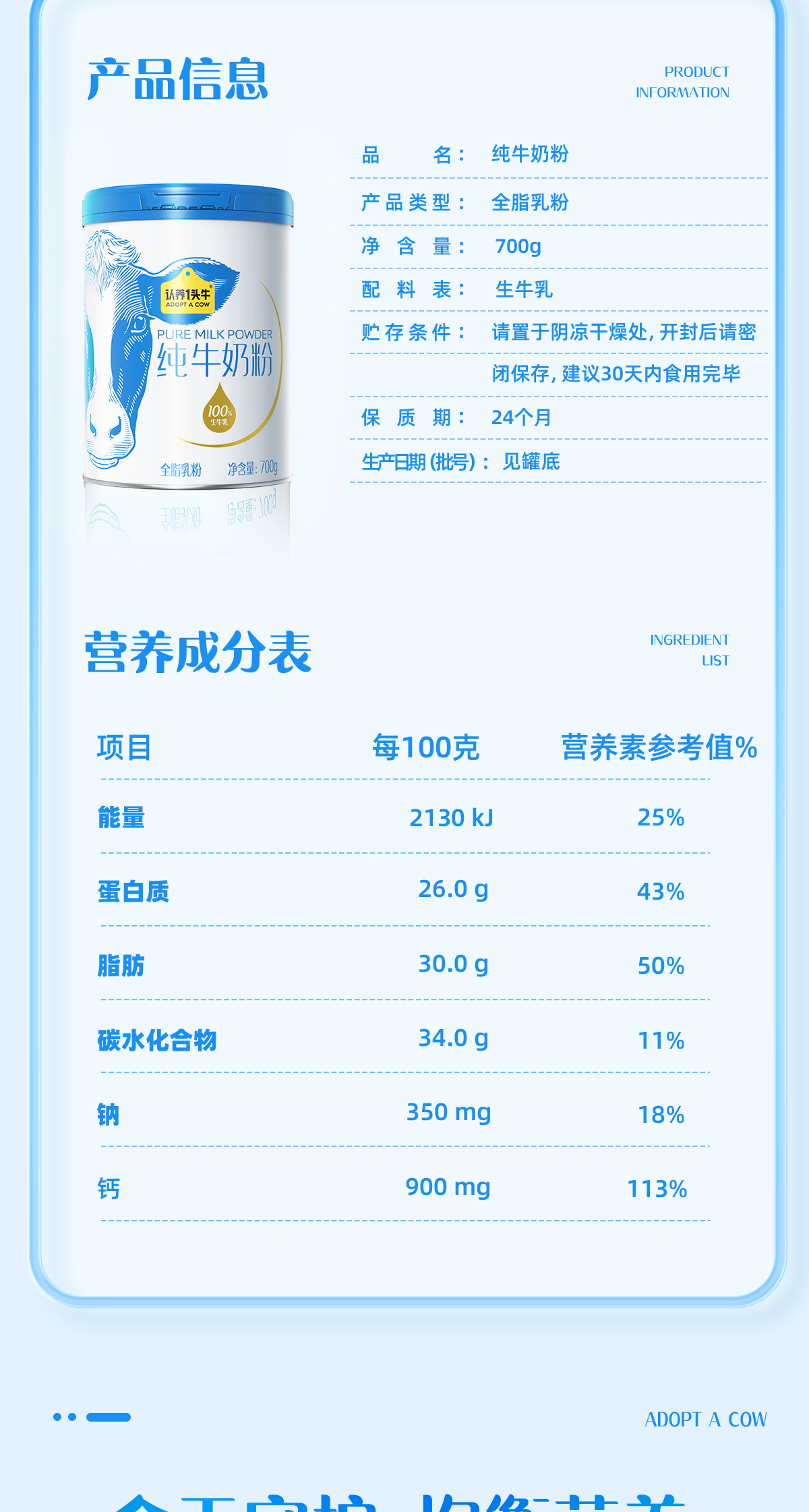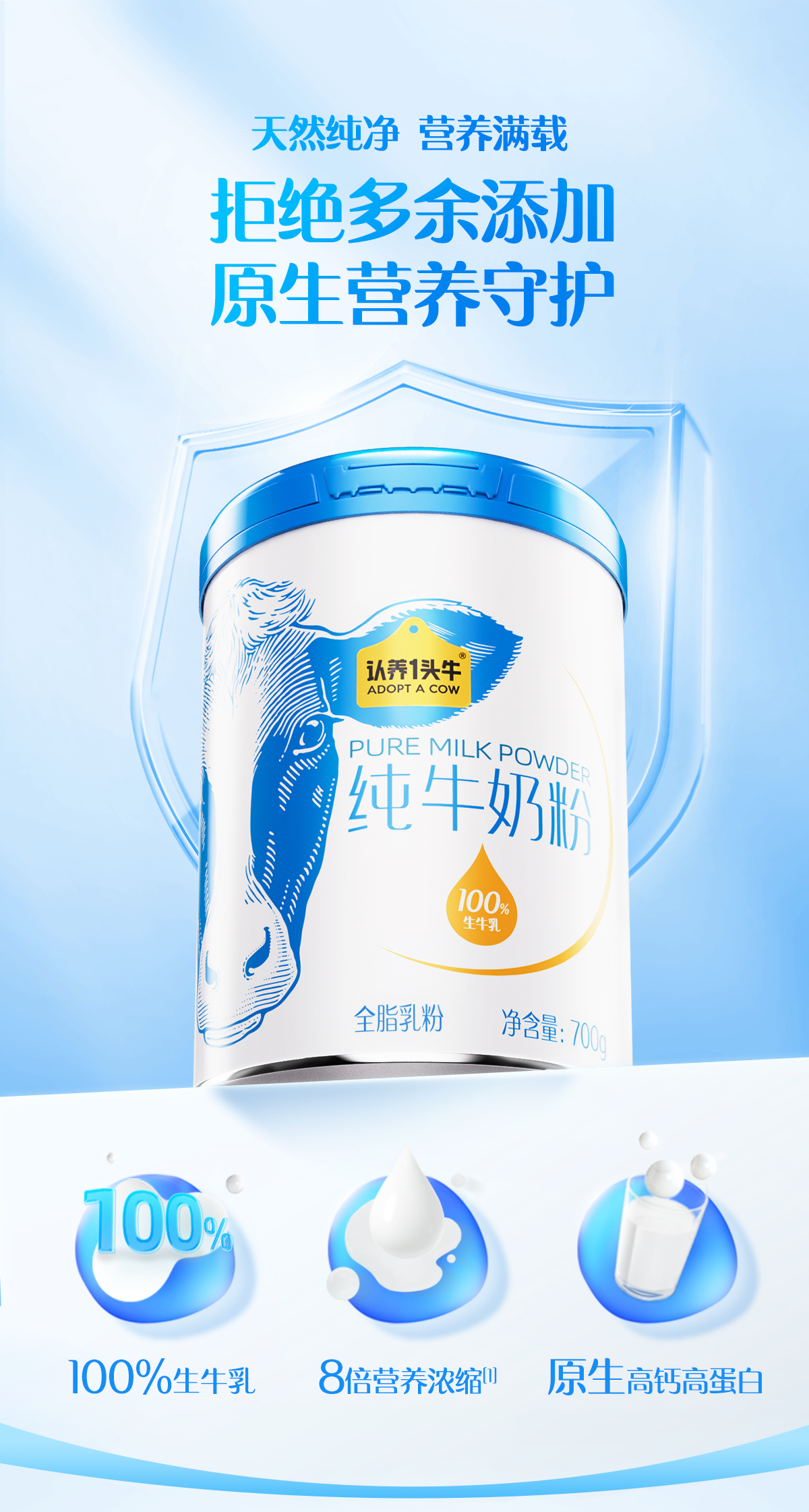 认养一头牛纯牛奶粉 700g/700g*2礼盒装