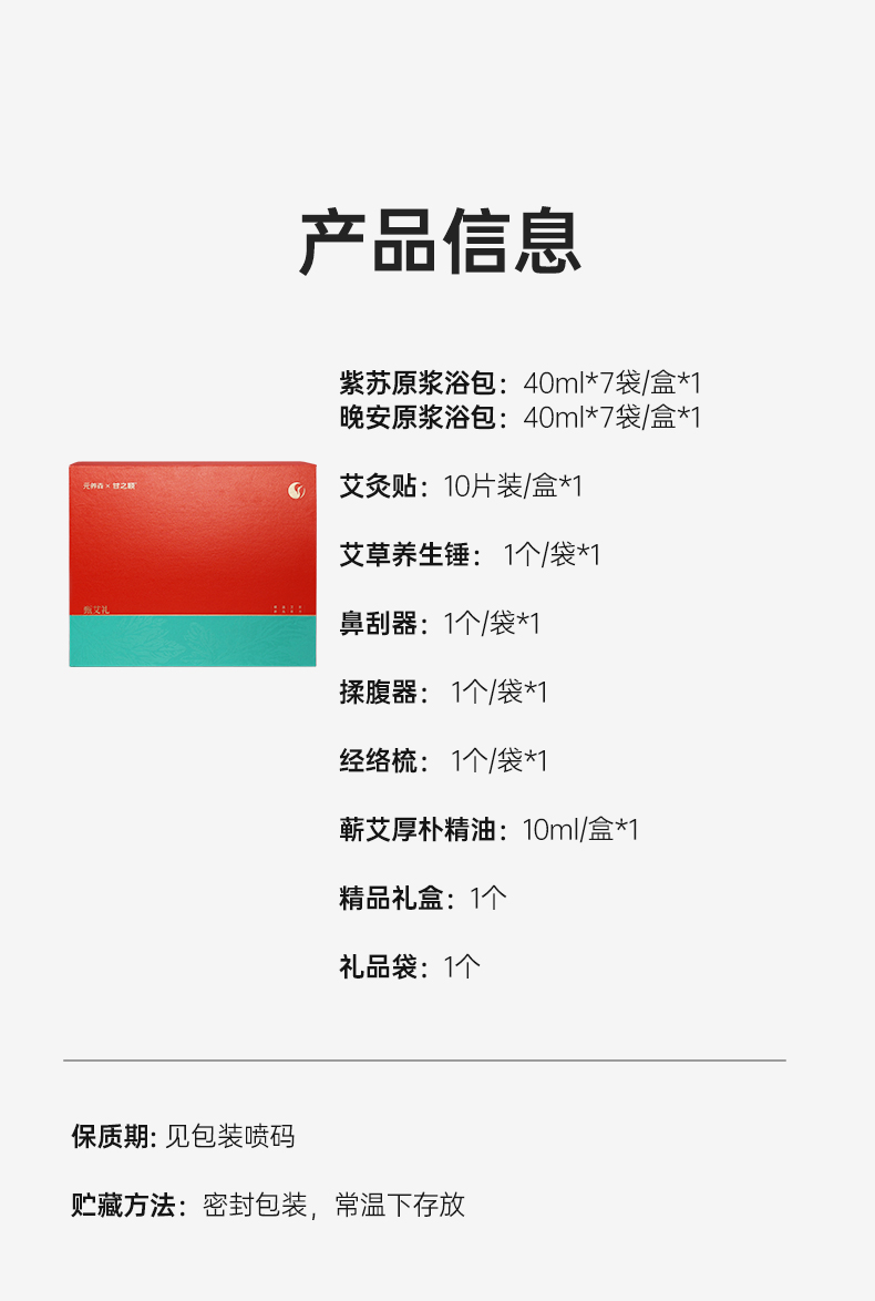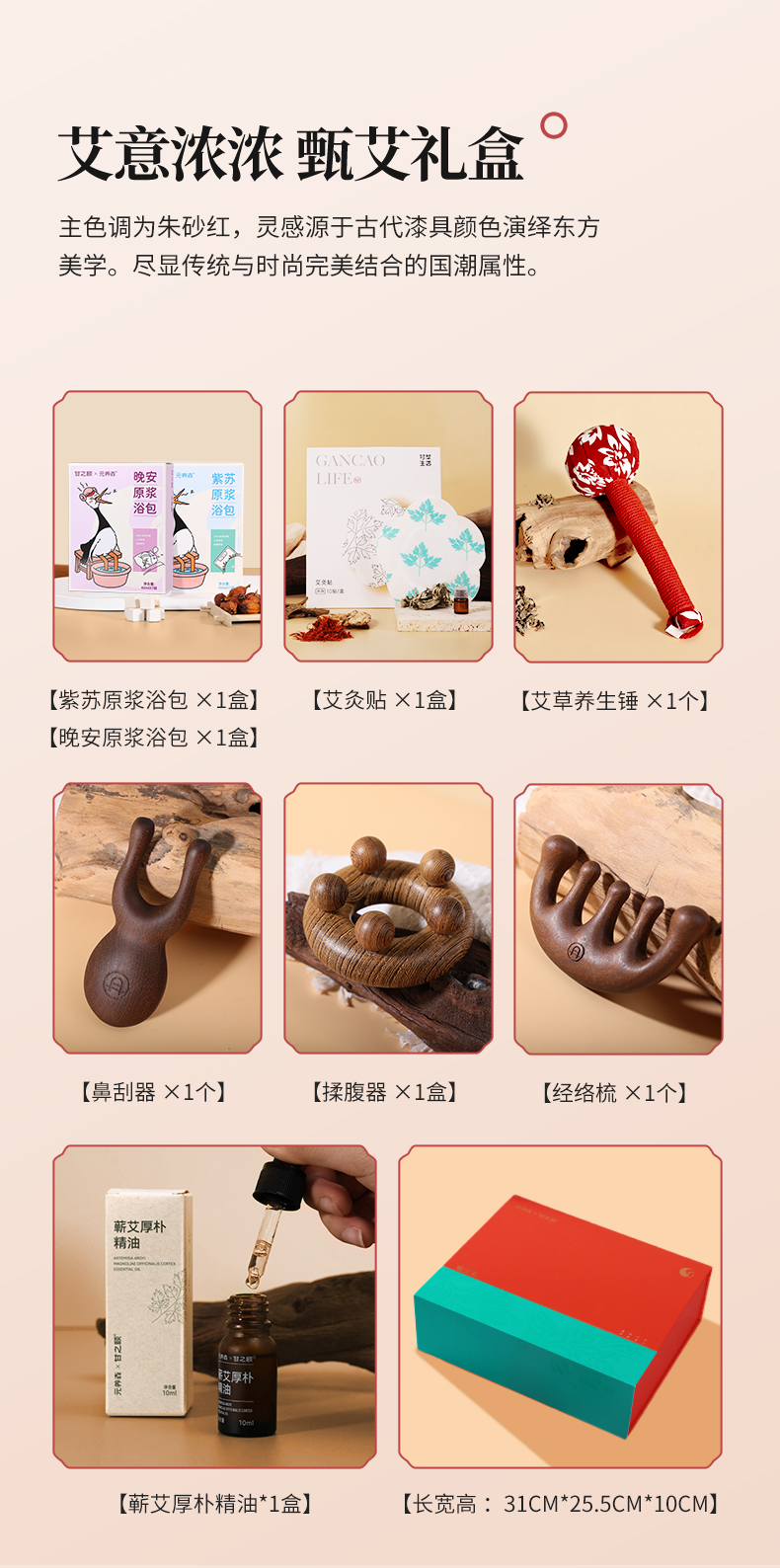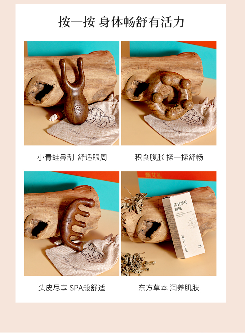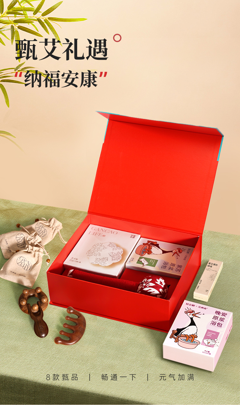甄艾礼盒 足浴包揉腹器经络梳鼻刮器按摩艾灸贴艾草锤蕲艾厚朴精油 滋养礼品送礼