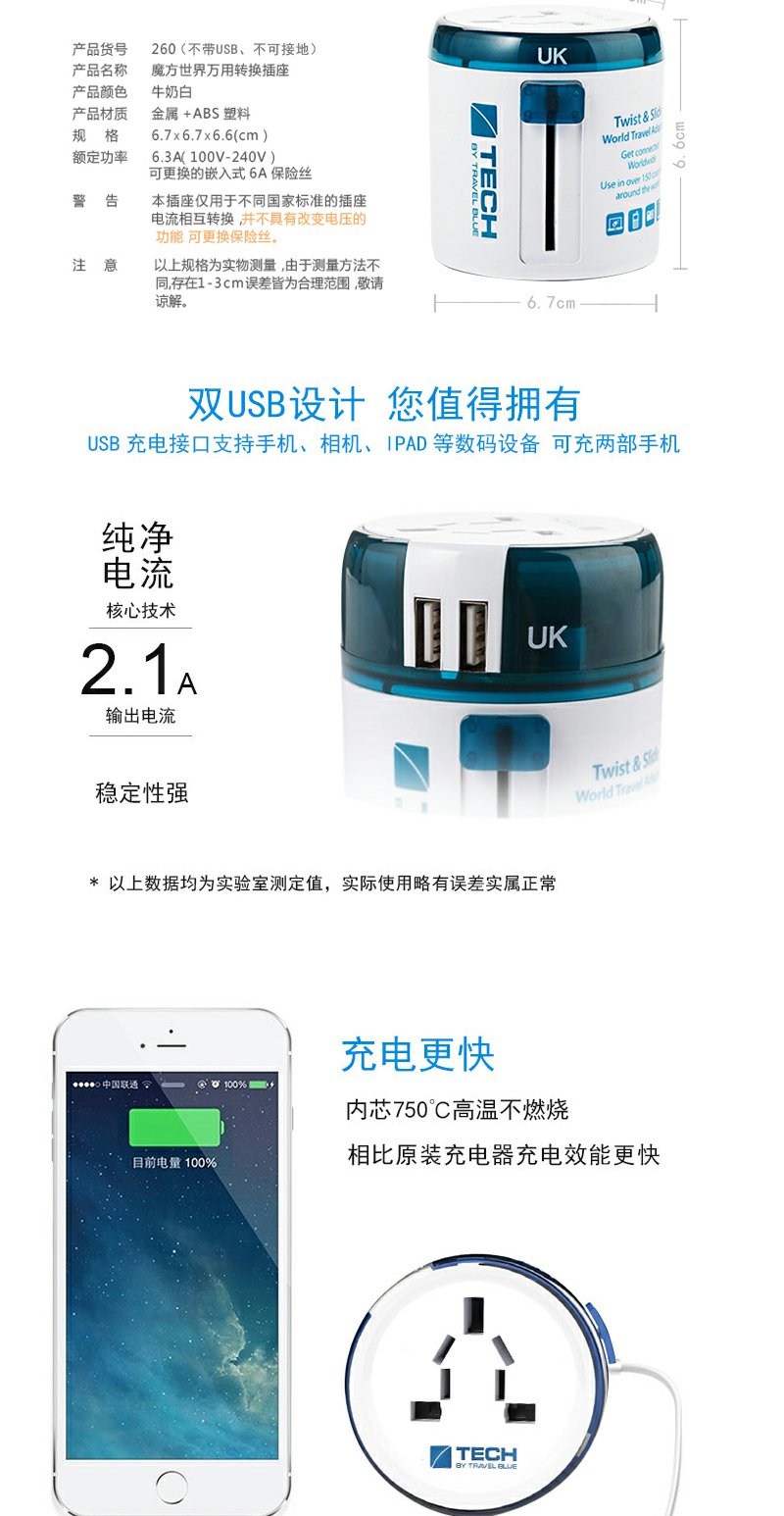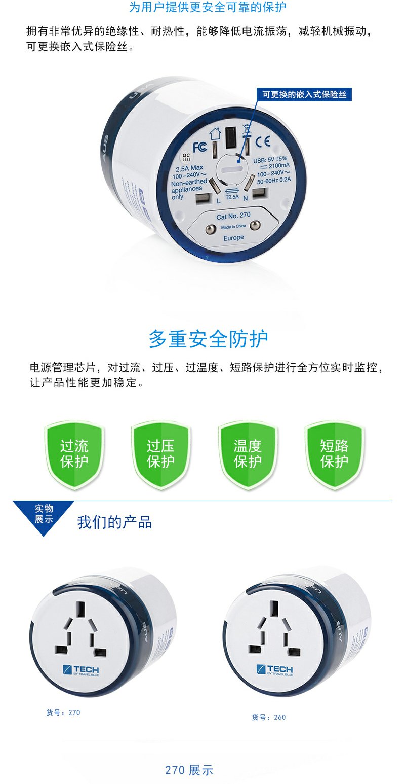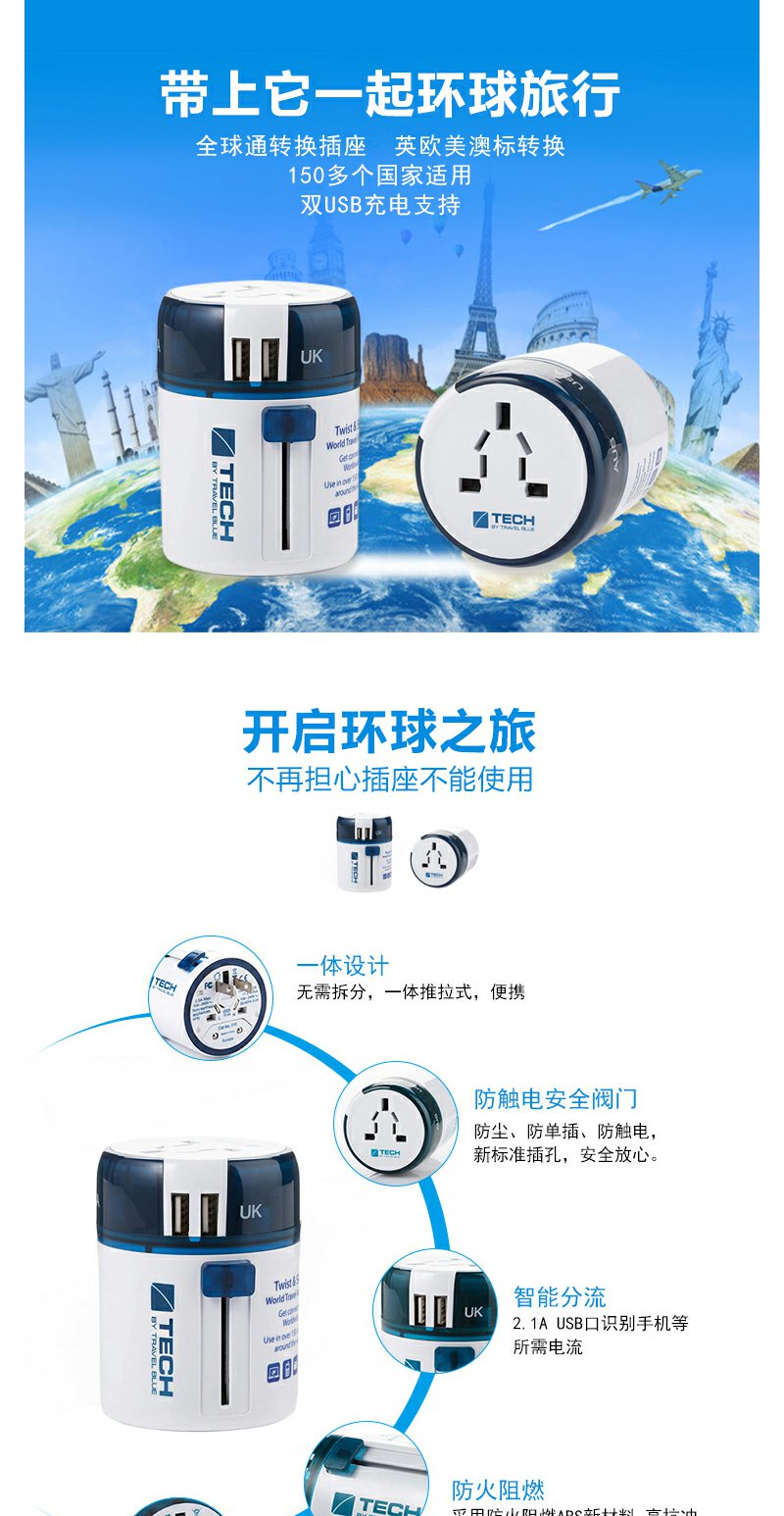 蓝旅(TRAVEL BLUE) 全球通用转换插头 多功能电源转换插座