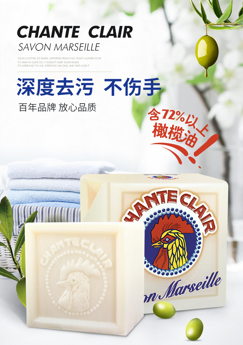 【3块装】CHANTECLAIR大公鸡管家马赛洗衣皂肥皂内衣皂 300g/块