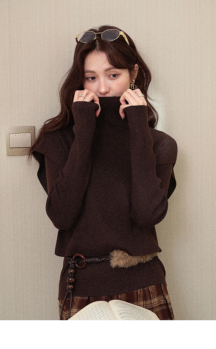 鹿向南「松果日记」真两件设计感针织衫女秋冬宽松巨好看咖色上衣