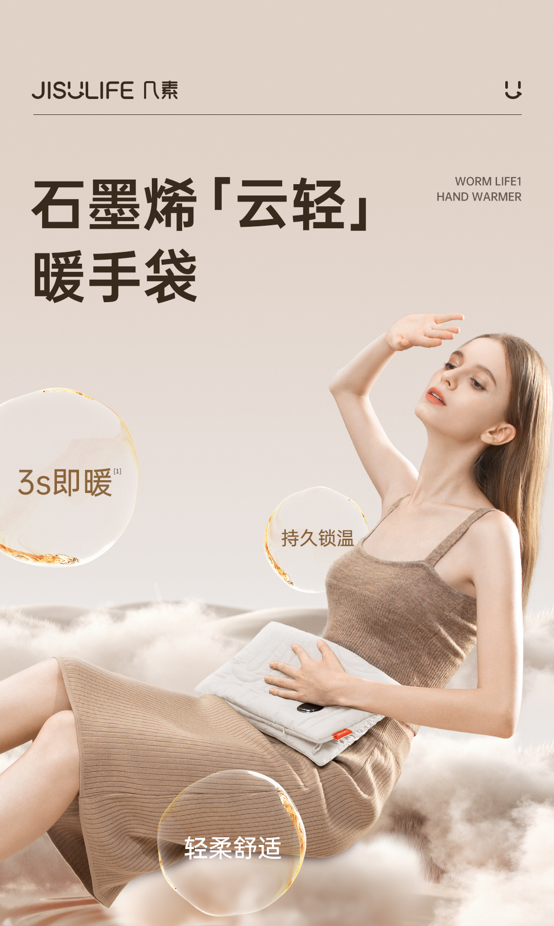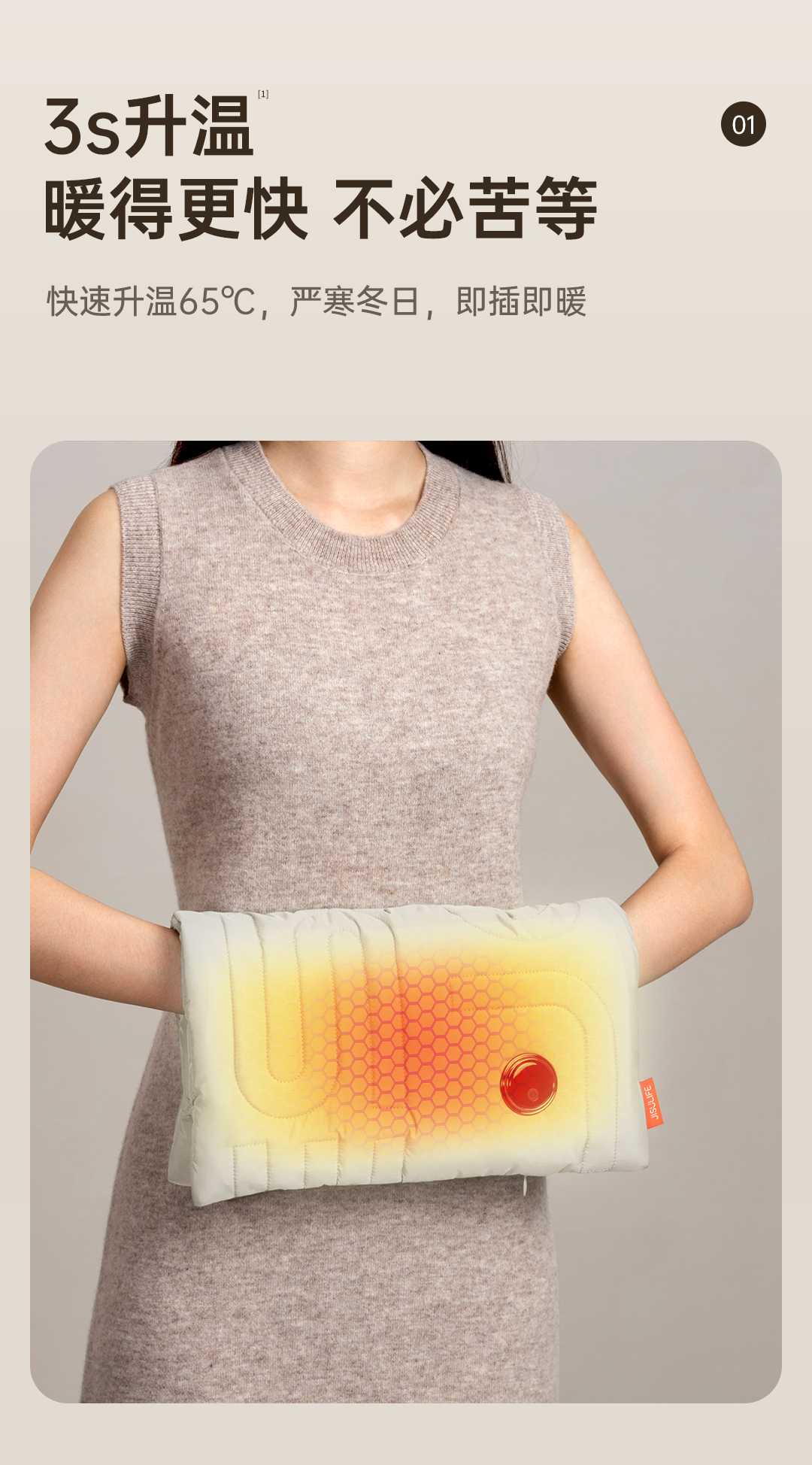 几素【全新升级】热水袋充电暖手宝石墨烯无水暖手袋云·暖手袋-棉绒款Warmer Life 1(HW09)