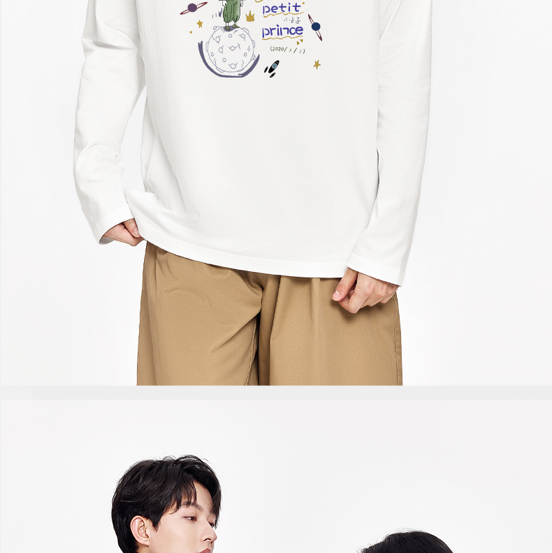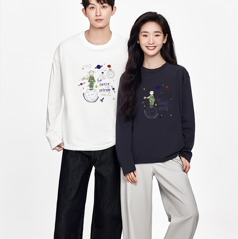 「棉的美学」萌趣卡通纯棉长袖T恤新款设计印花情侣同款打底上衣