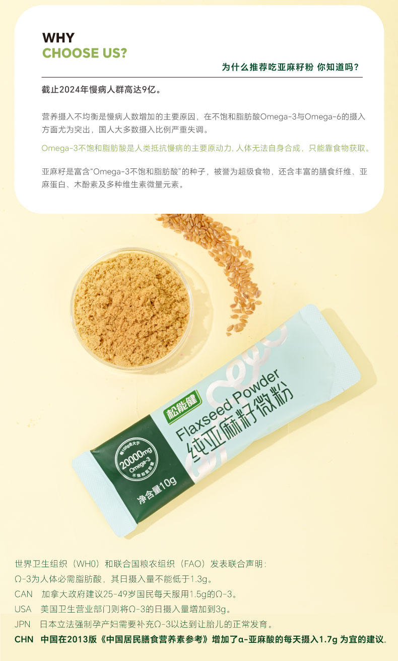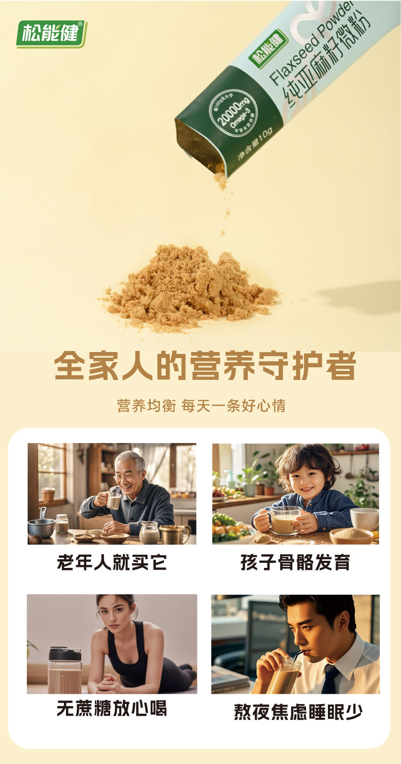 松能健纯亚麻籽粉熟微粉代餐热饮小袋装天然胡麻籽营养健康饱腹感