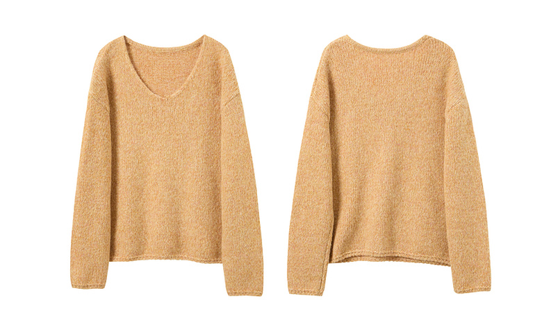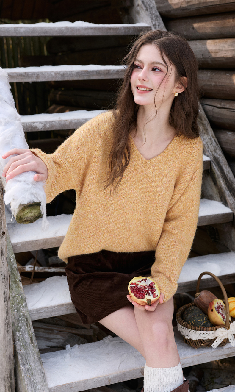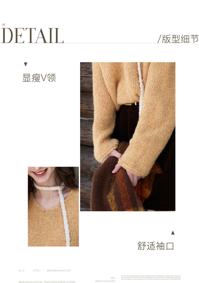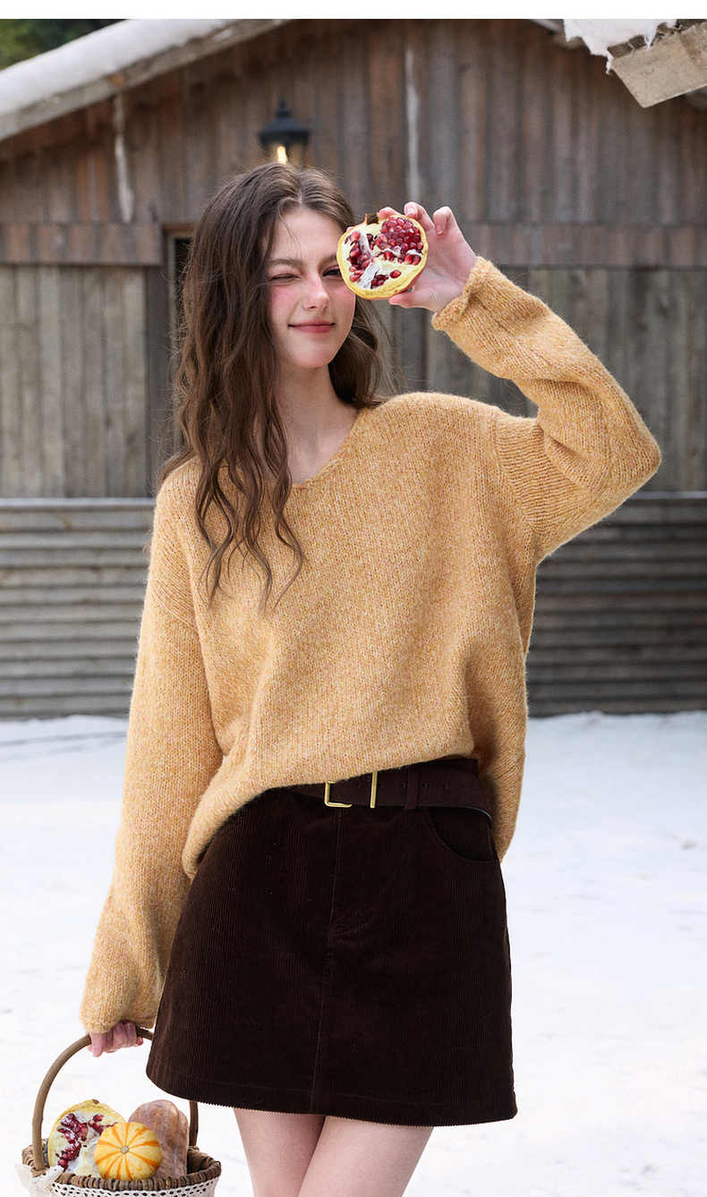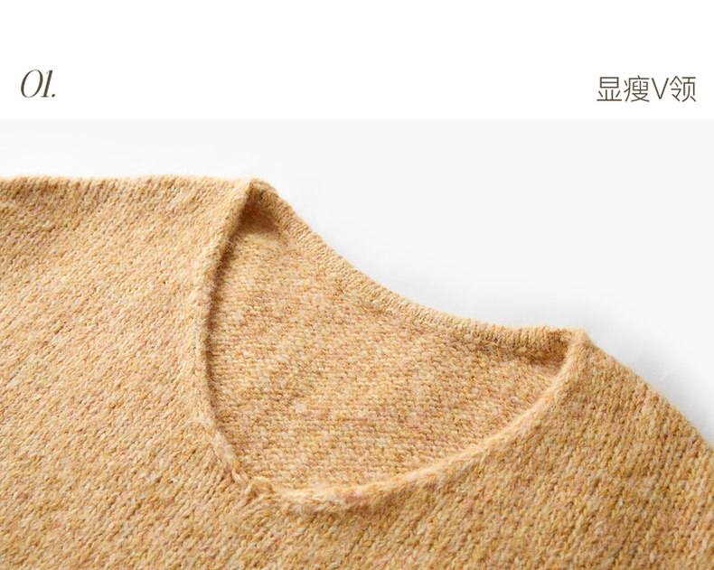 三彩2025冬季新款休闲简约V领针织衫落肩袖宽松套头毛衫上衣M