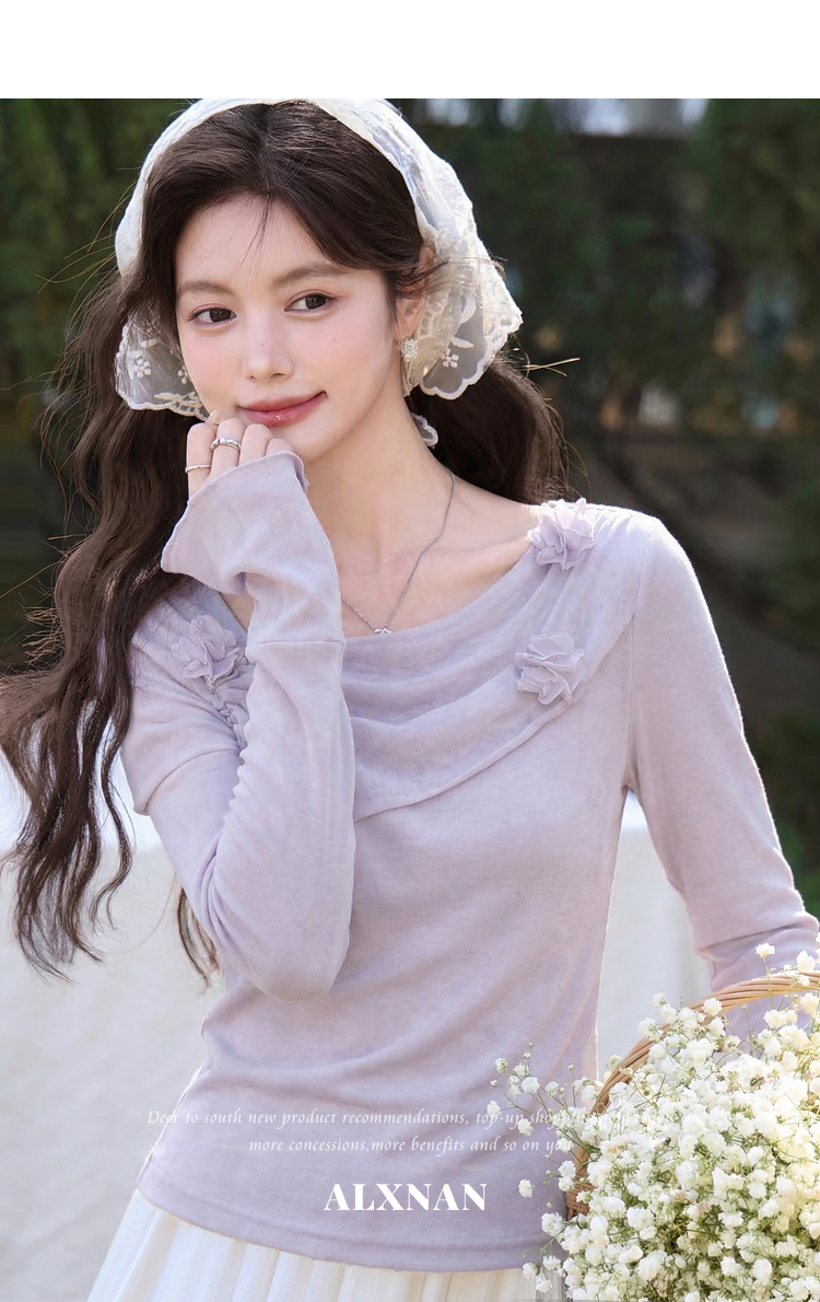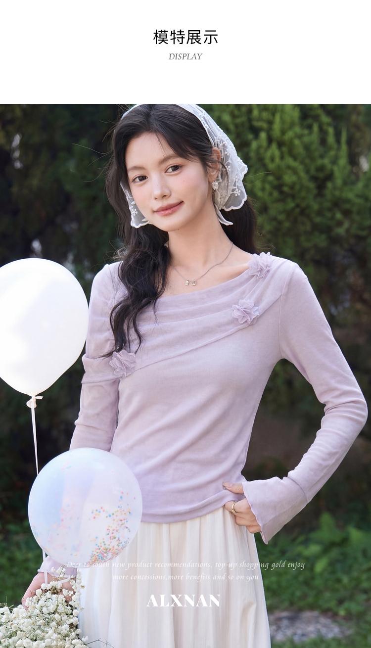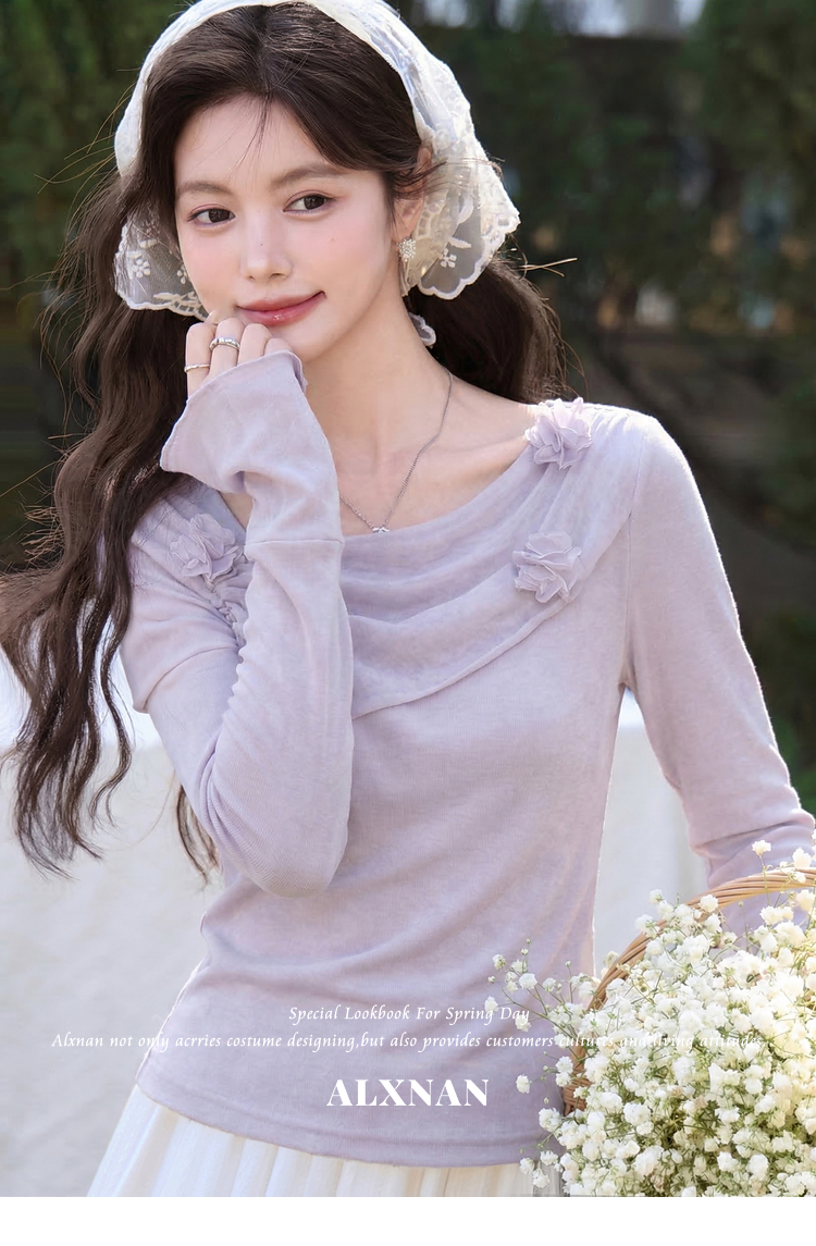 鹿向南「琉璃花海」法式设计感紫色T恤女春小众气质修身短款上衣