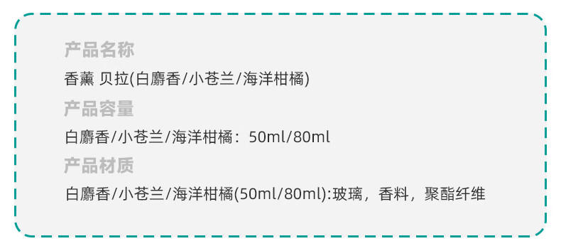 香薰 贝拉 白麝香/小苍兰/海洋柑橘 约50ml/80ml