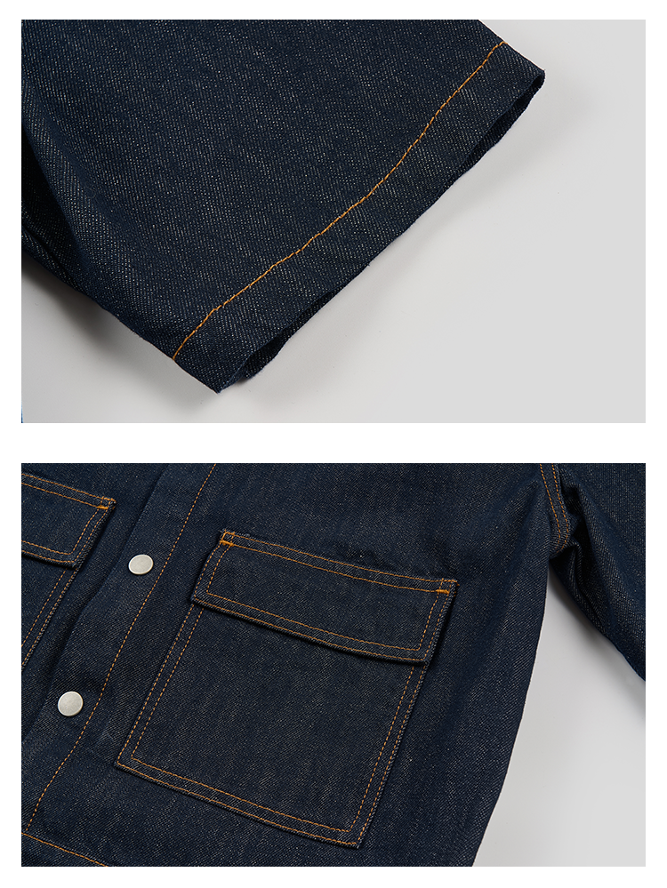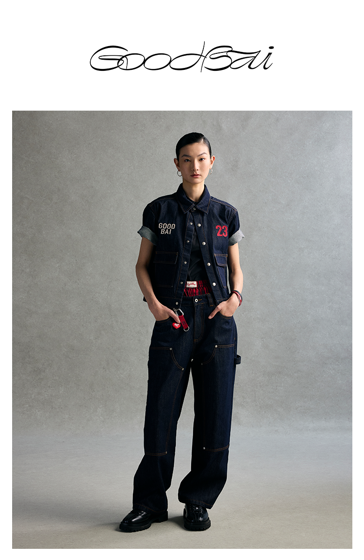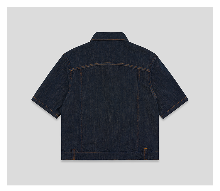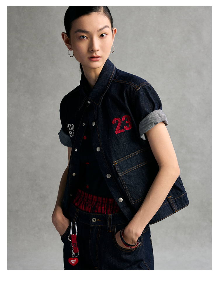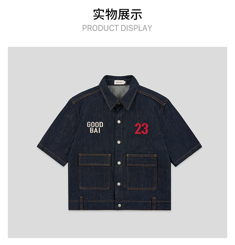 GOODBAI 粗体23 logo刺绣翻领口袋牛仔短袖外套