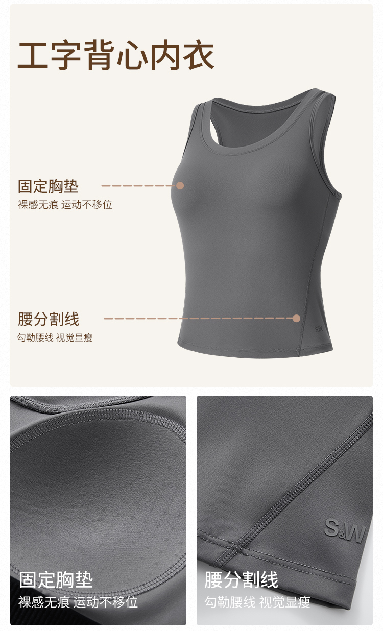 【sw速惟】大U领侧腰分割线显瘦小设计百搭一体式背心S4AW8176