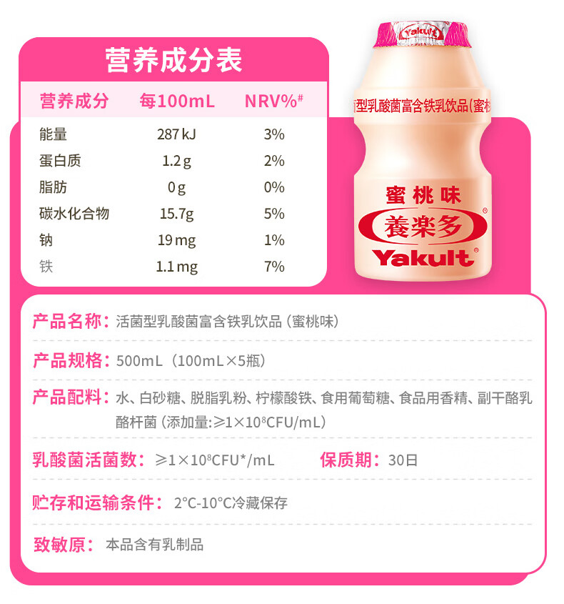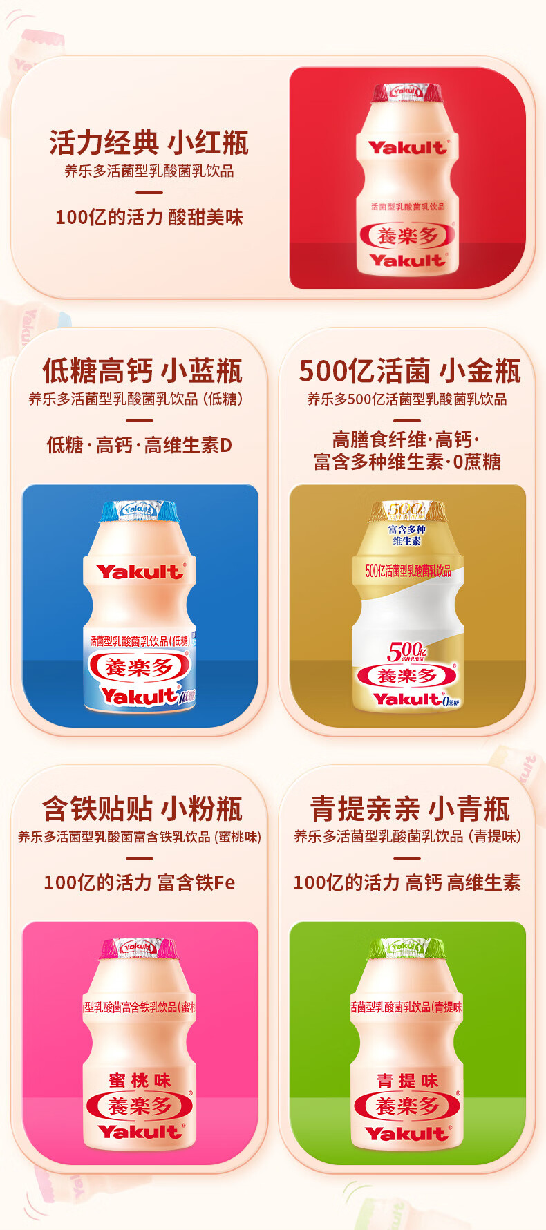 养乐多活菌型乳酸菌乳饮品低温活性乳酸菌饮料 原味5+低糖5+金瓶5+蜜桃5瓶