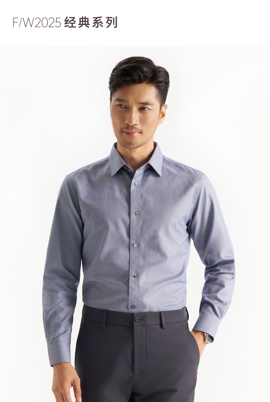 经典三号浅色仿牛仔衬衫257B0F651L新疆长绒棉 透气吸湿双股纱衬衫 吸湿排汗[门店专款]