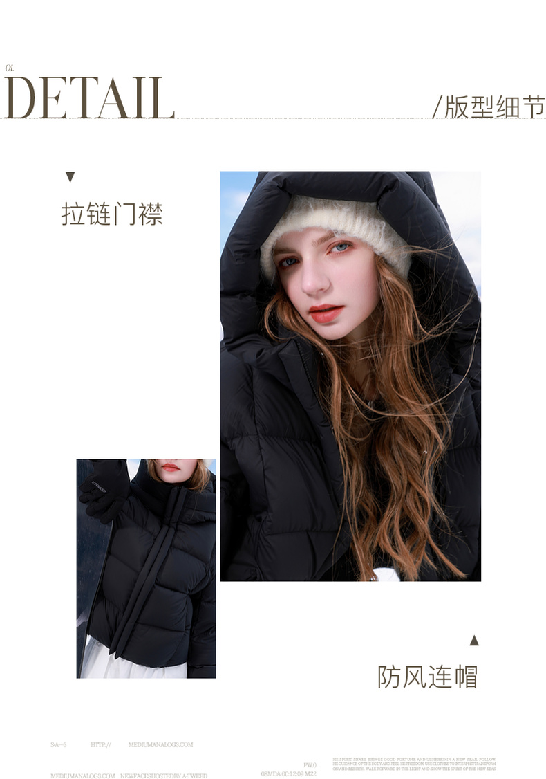 【90白鹅绒】三彩2025冬季新款宽松面包服羽绒服防水外套M
