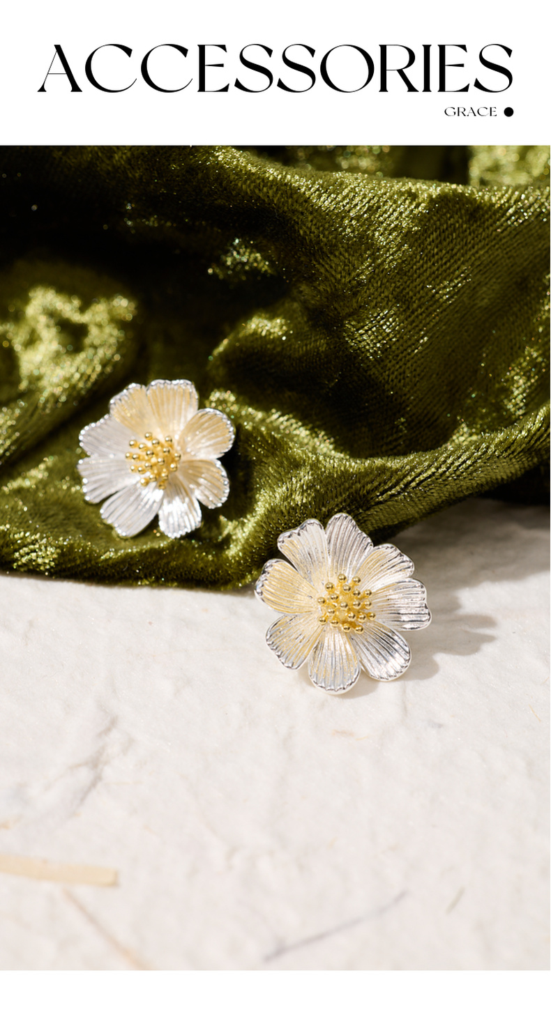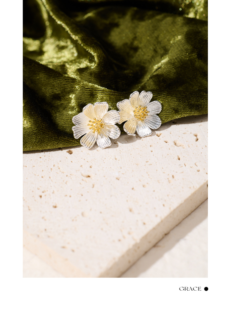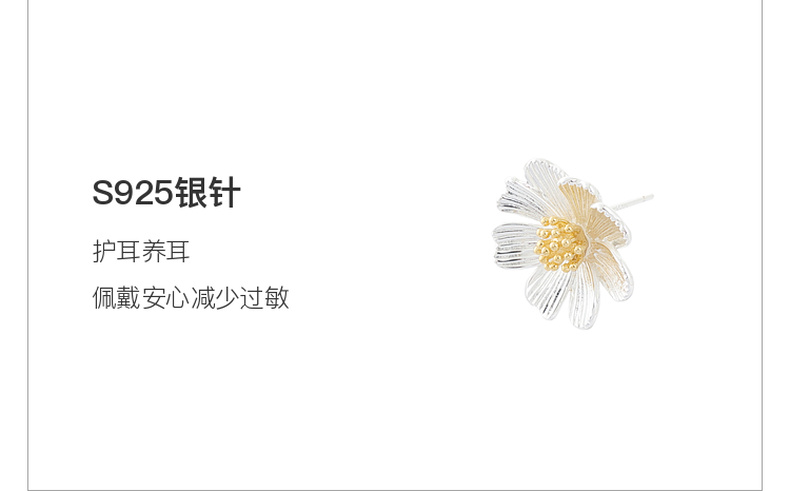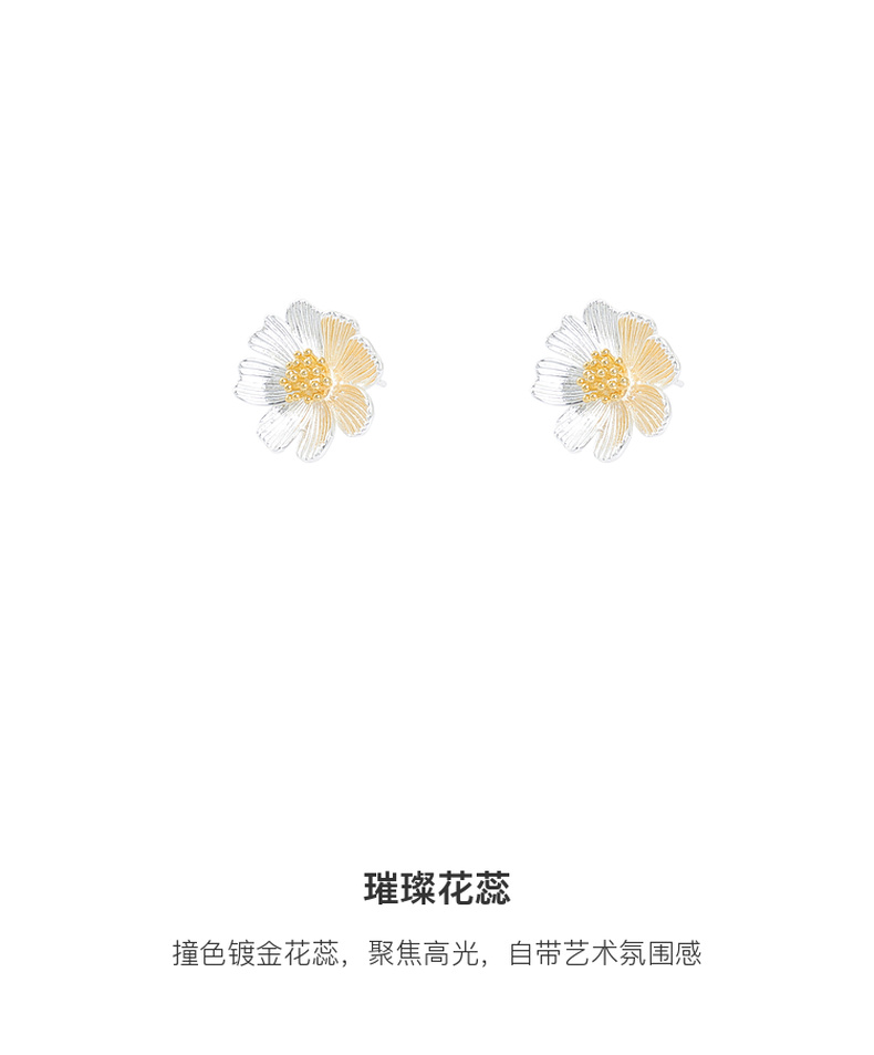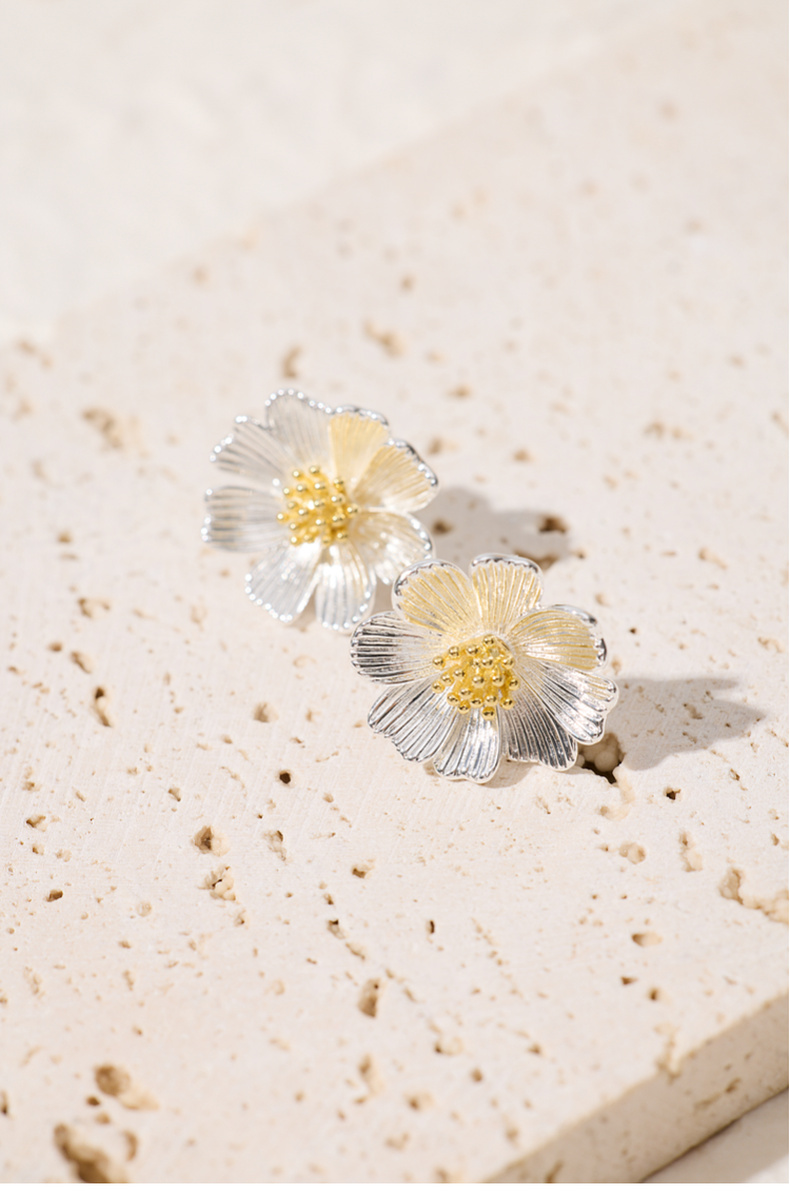 三彩2025新款自然系花朵耳钉S925银针拉丝金银撞色艺术约会小众女