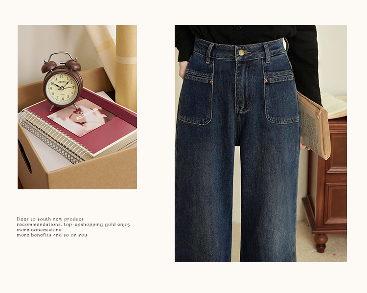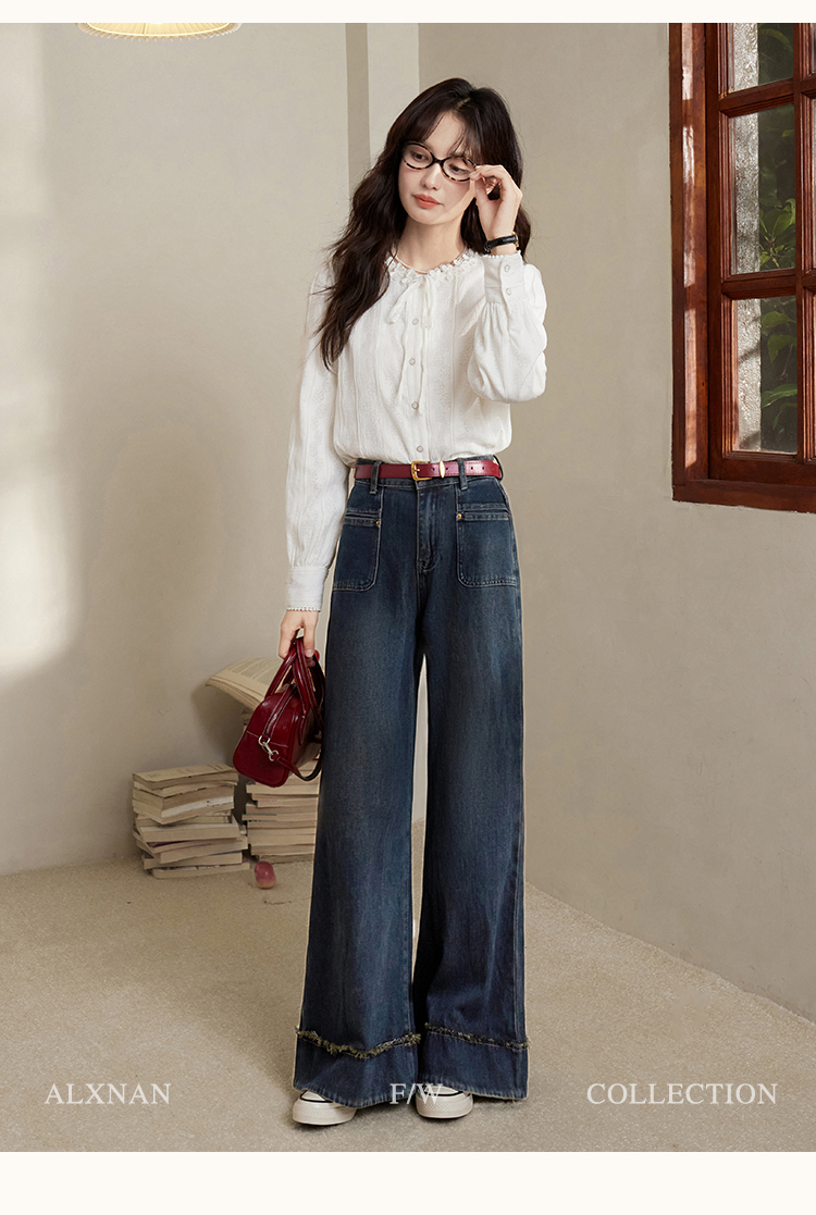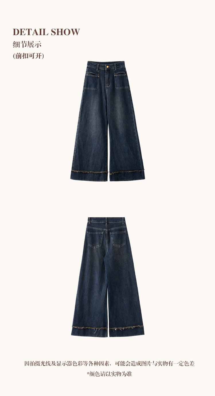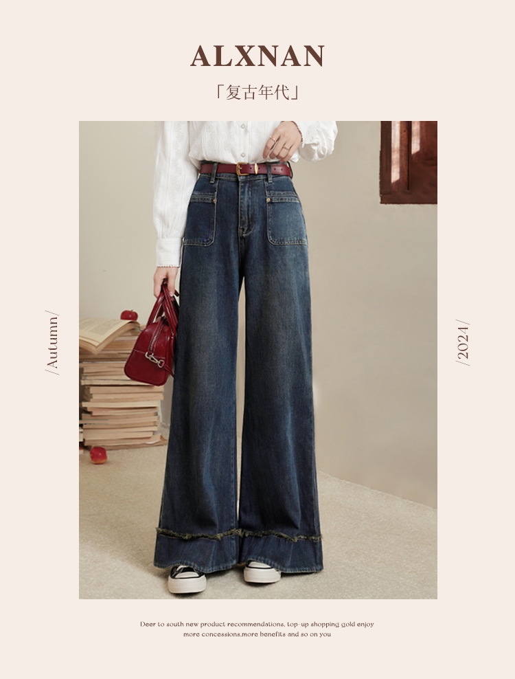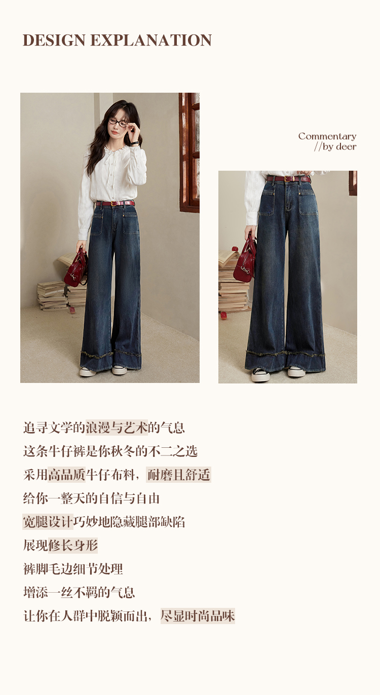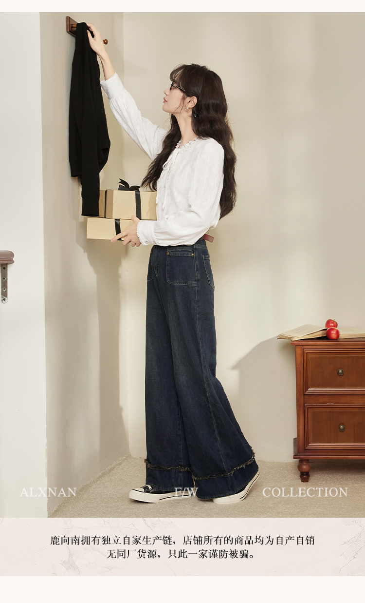 鹿向南「复古年代」高腰气质阔腿牛仔裤女2025秋冬新款显瘦长裤子