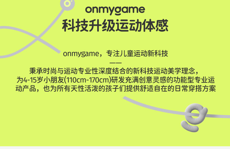 onmygame儿童专业运动品牌男女童款耐脏不易皱,柔软但不软踏