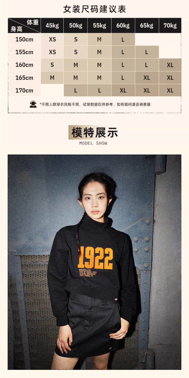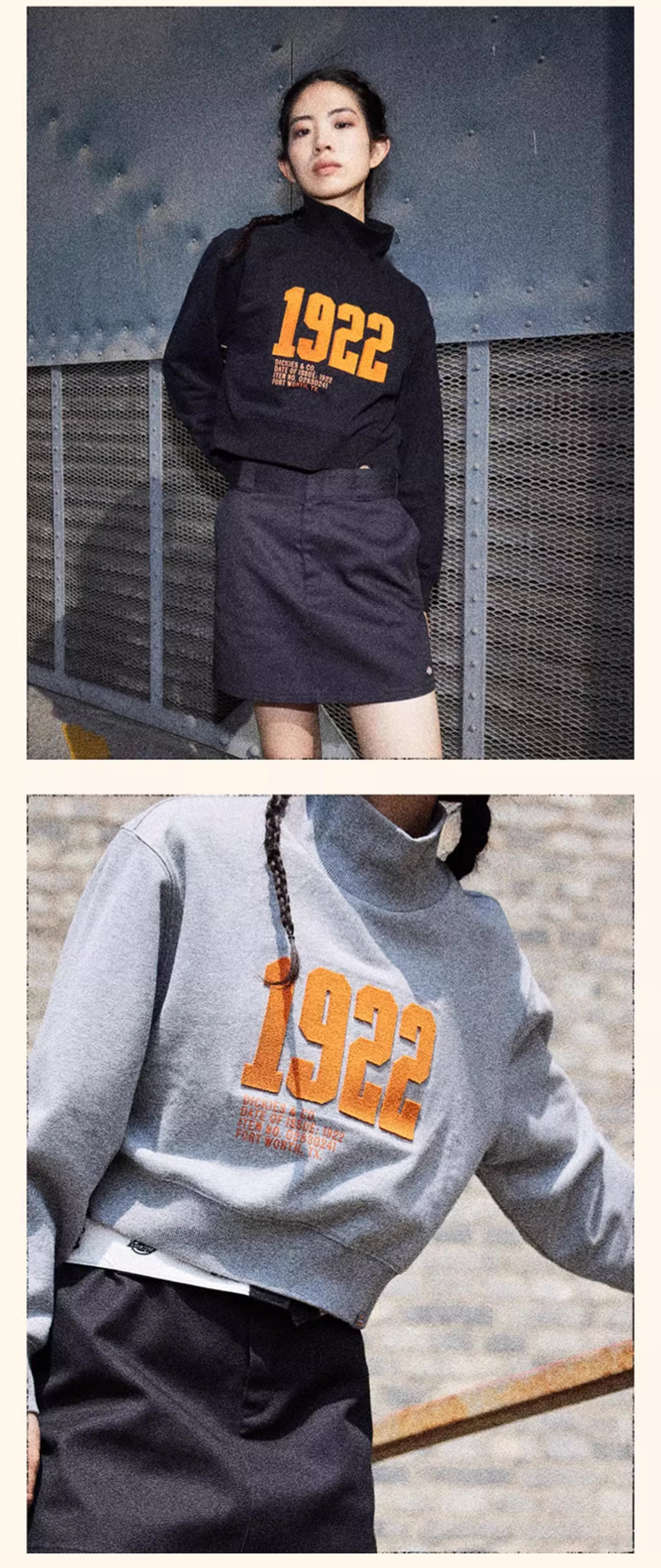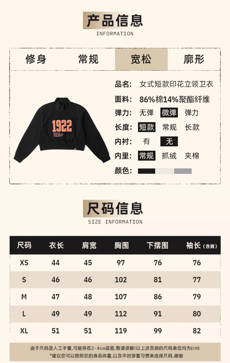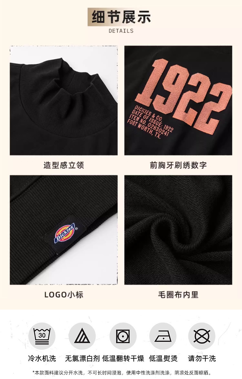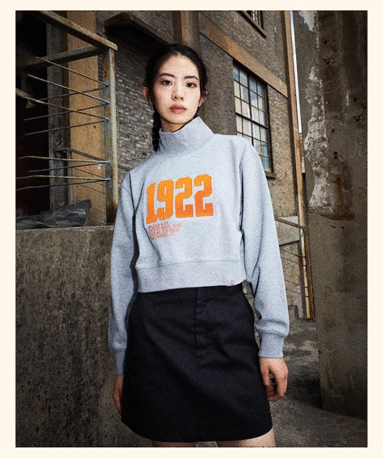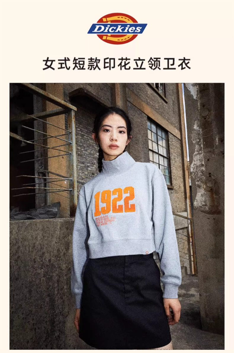 Dickies女式短款印花立领卫衣 休闲百搭简约 女卫衣 DK0A87L9 Y