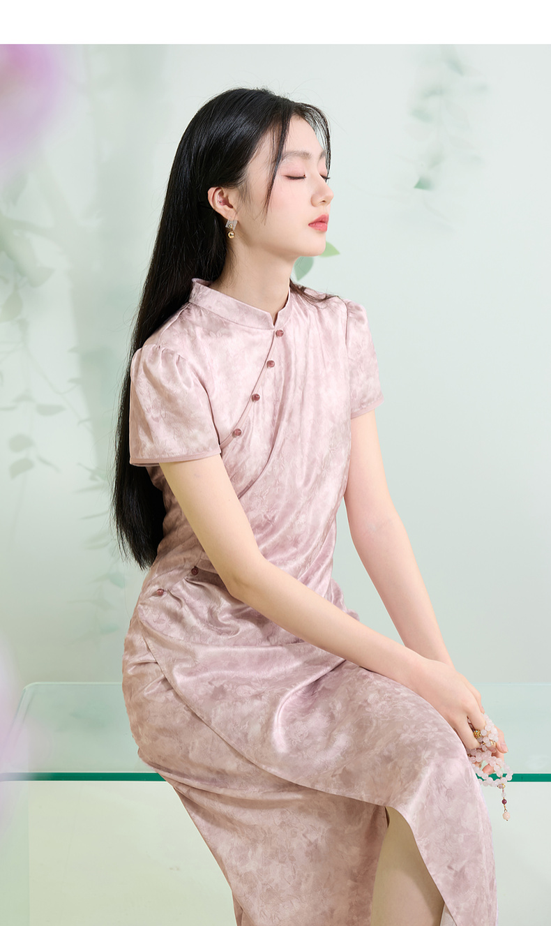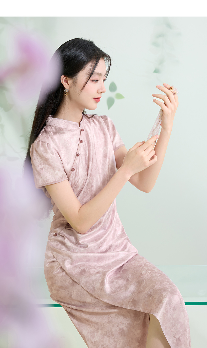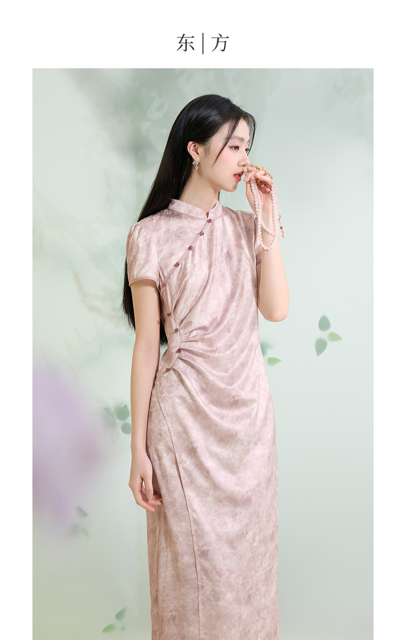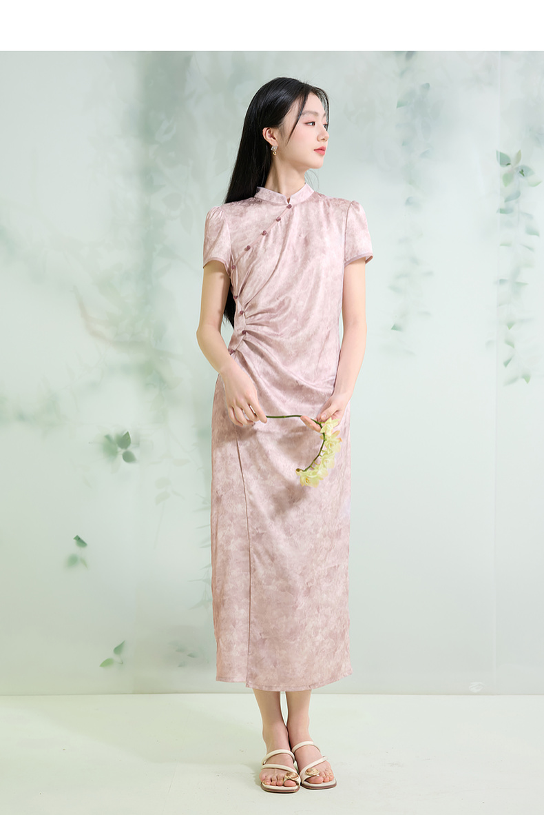 三彩【陌上花开】2025夏季新款新中式连衣裙收腰A字裙长裙C