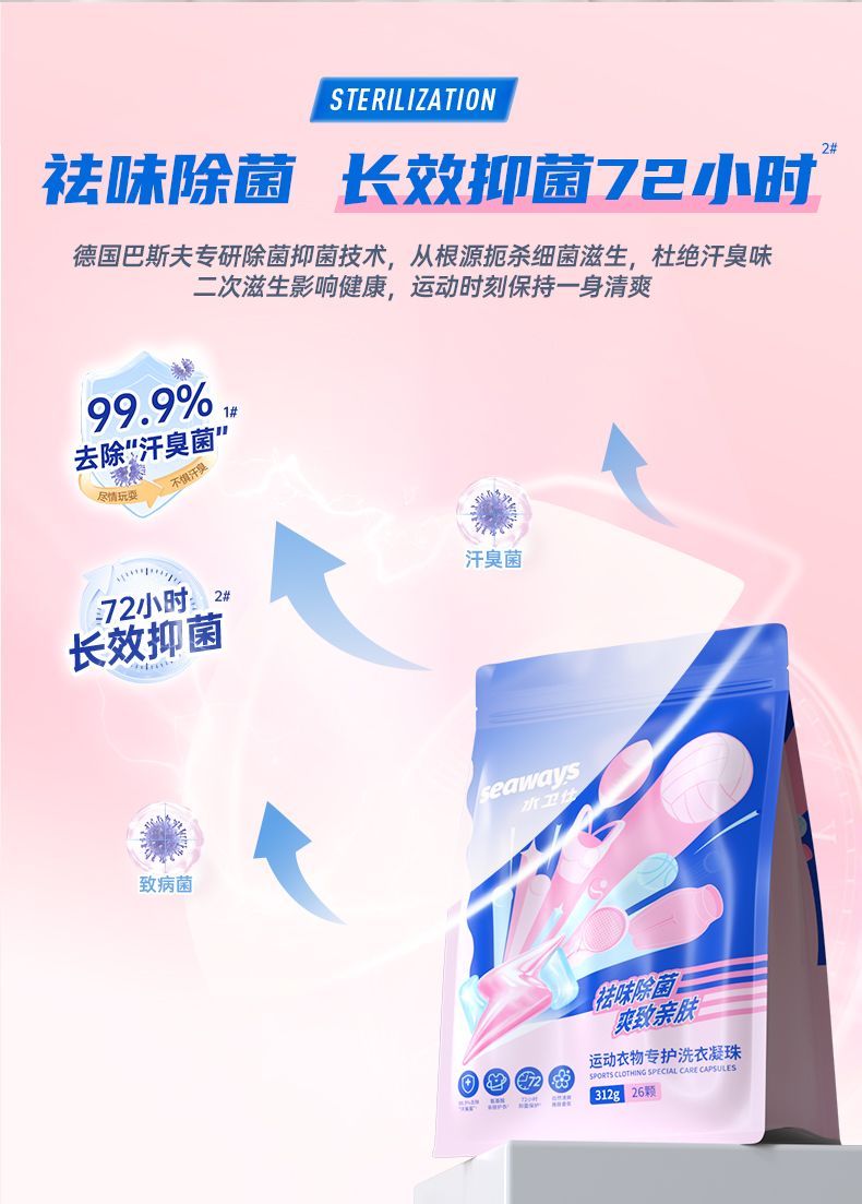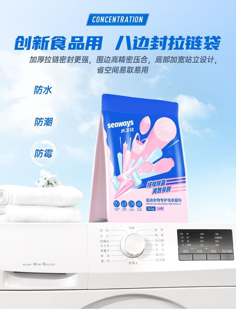 水卫仕洗衣凝珠三合一 祛味除菌留香浓缩洗衣液机洗运动衣物专护 升级三合一运动衣物洗衣凝珠