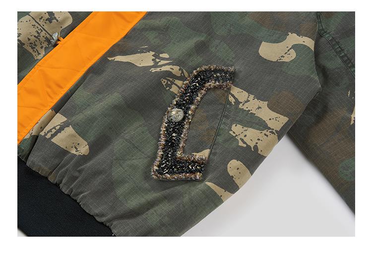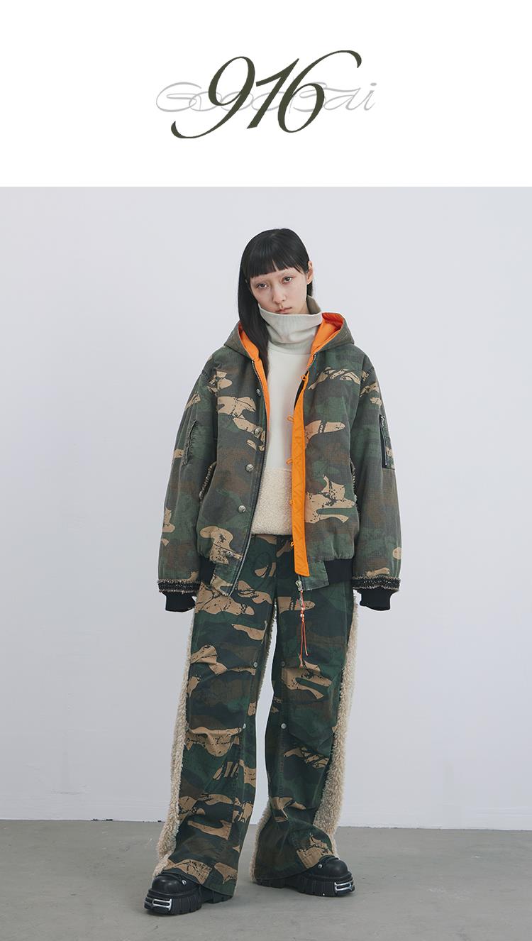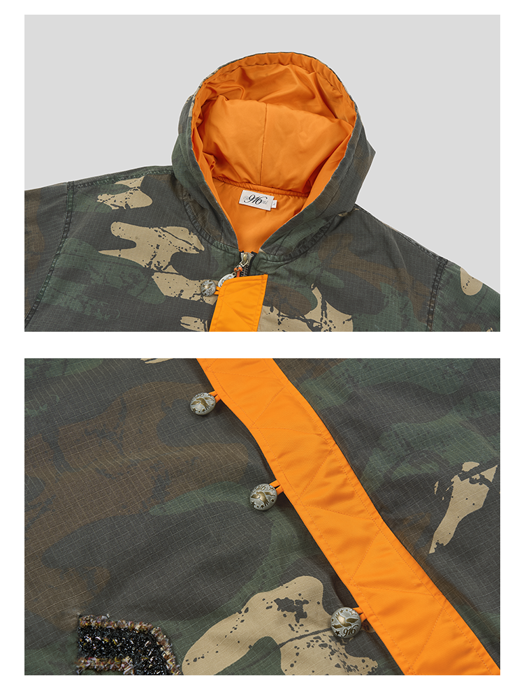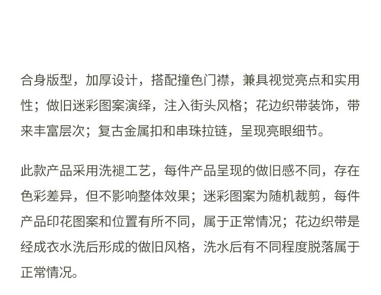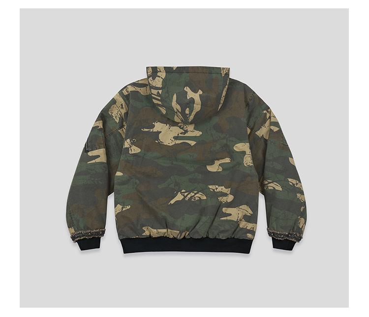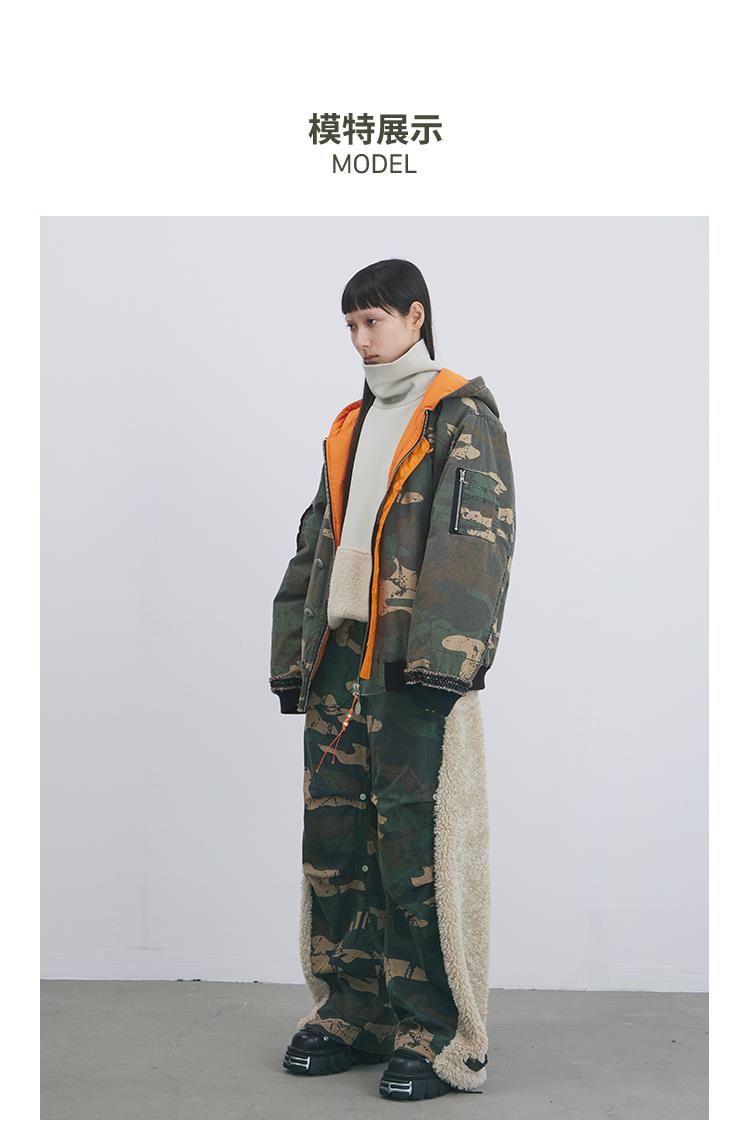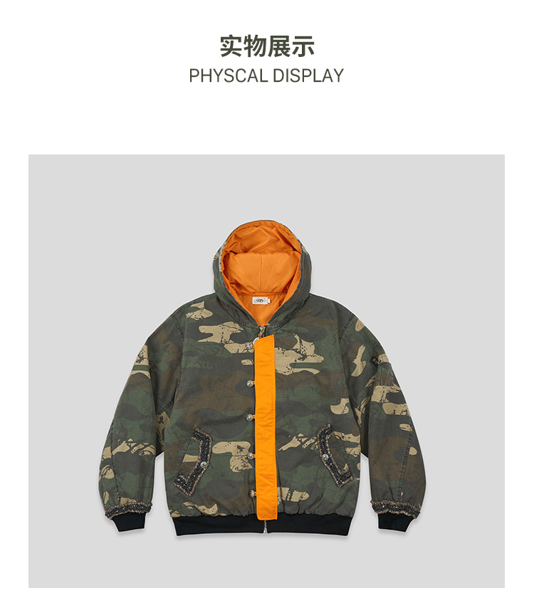 GOODBAI 916 迷彩撞色连帽加厚花边口袋外套