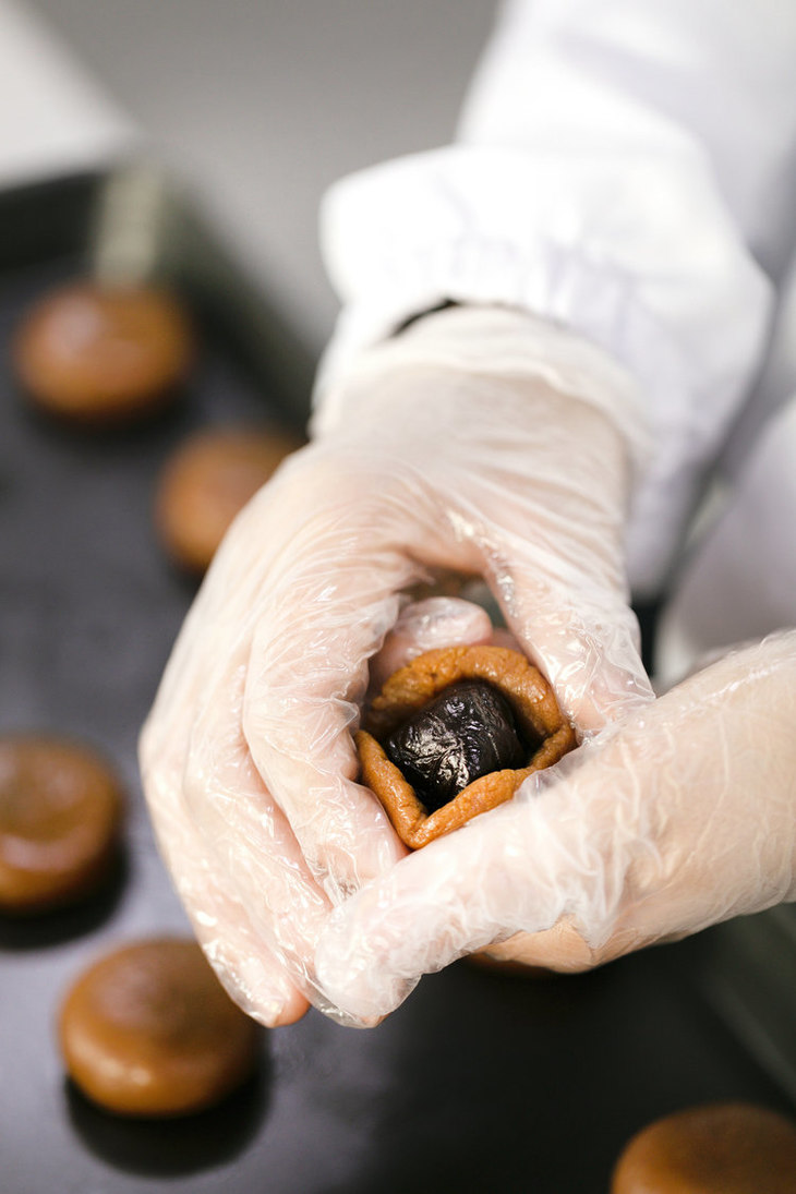 饼皮的制作上,也做了科学的减法,仅用小麦粉+鲜鸡蛋+山药,融入少量糖浆;