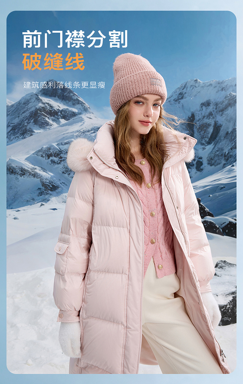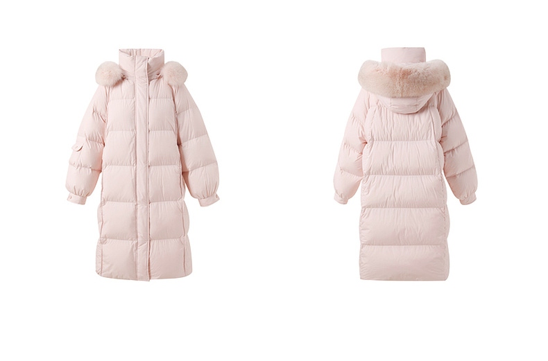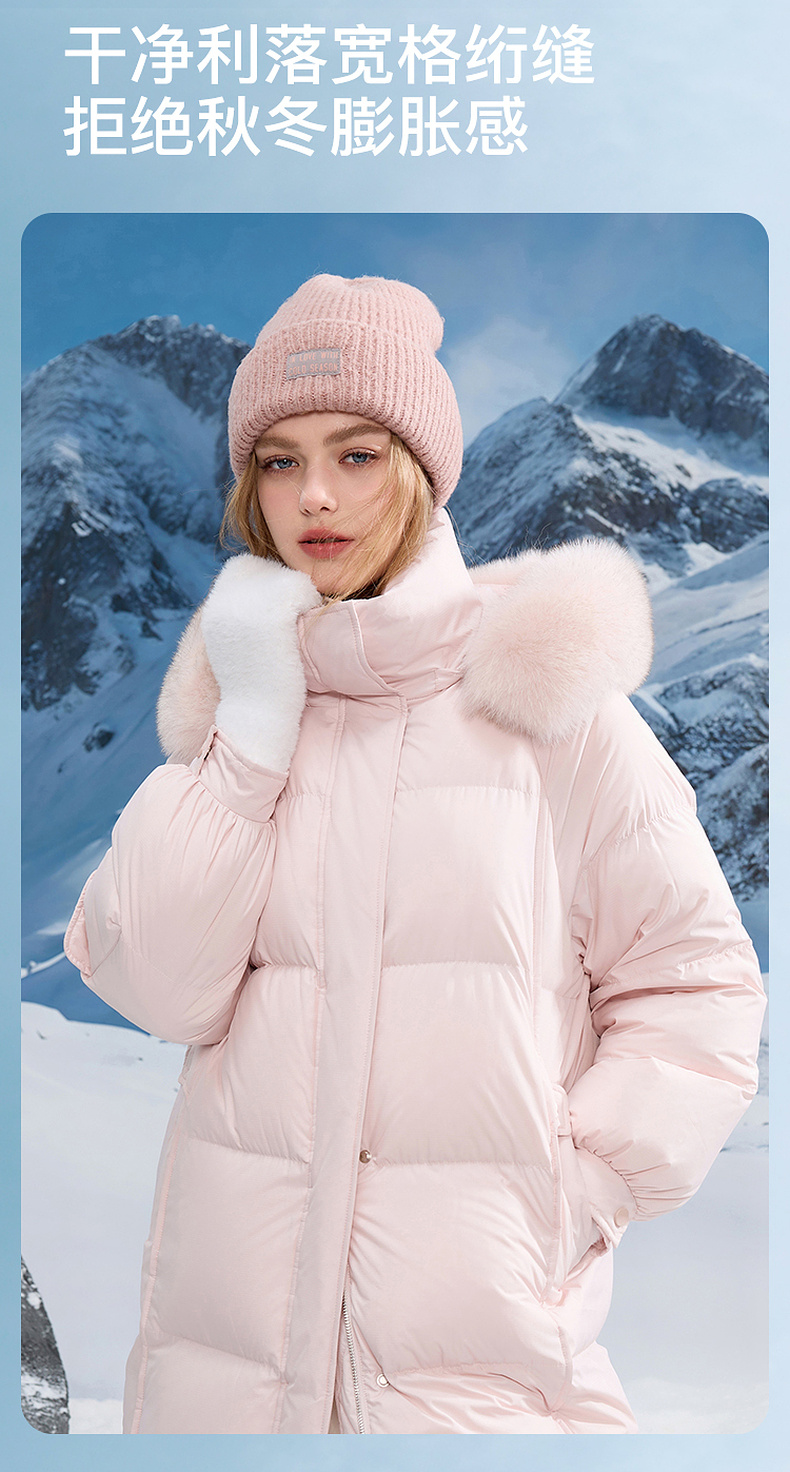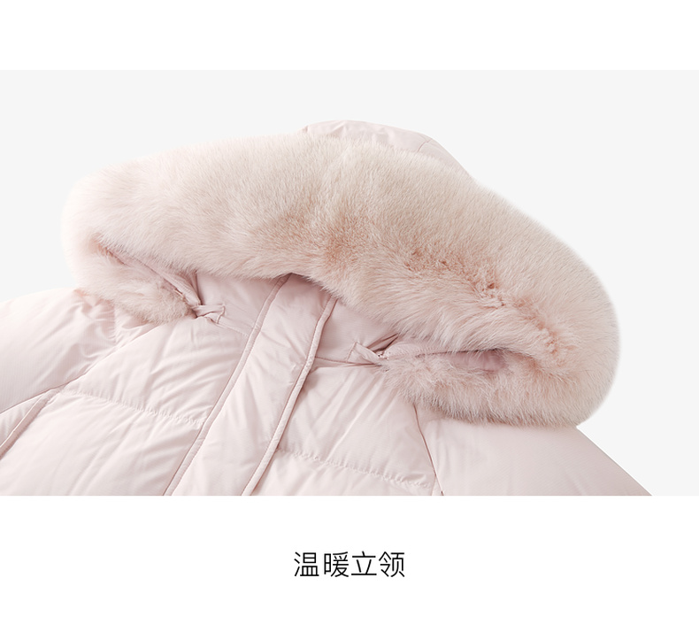 三彩2025冬季新款立领羽绒服狐狸毛领长款白鹅绒外套被子服休闲女