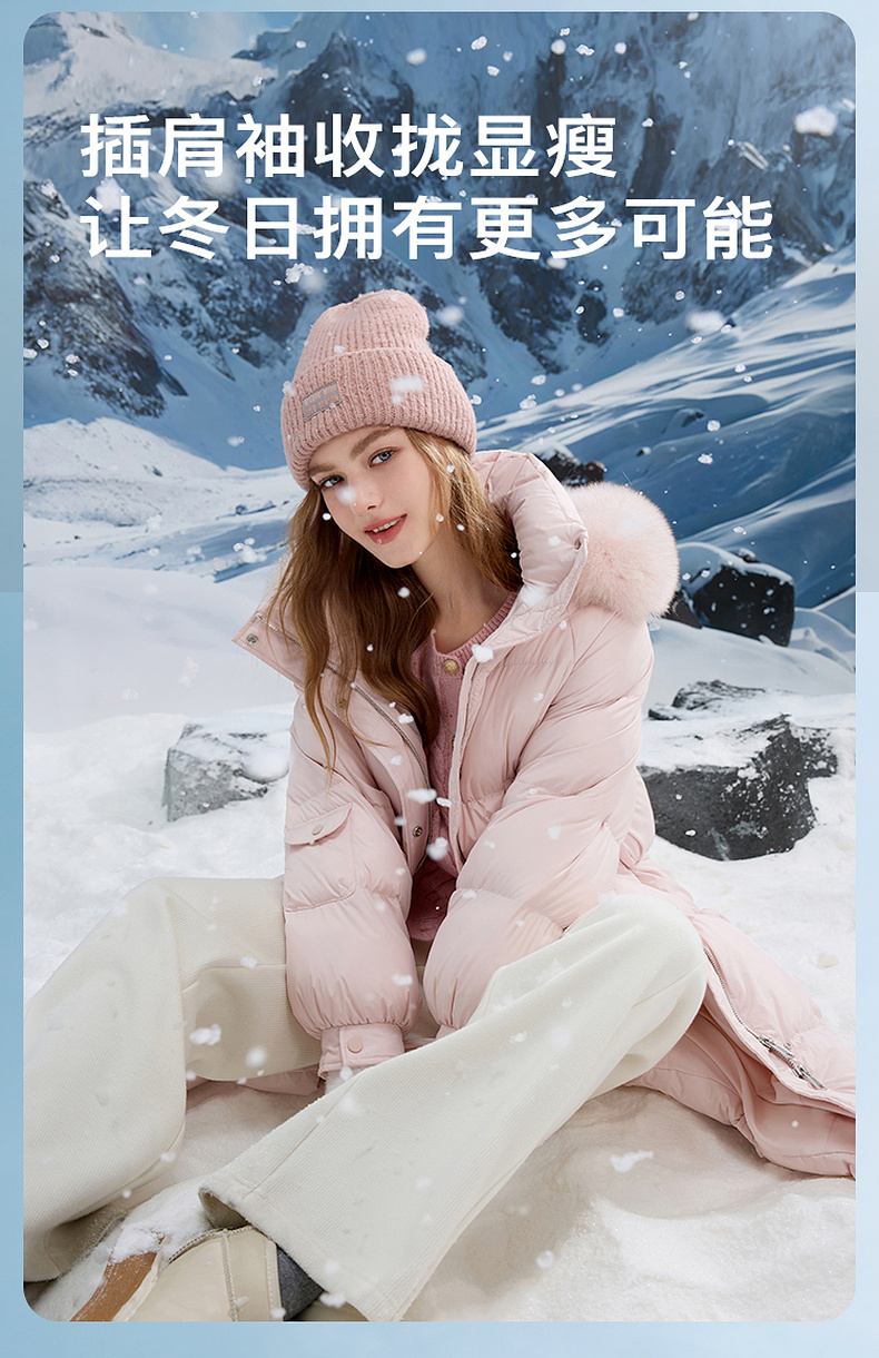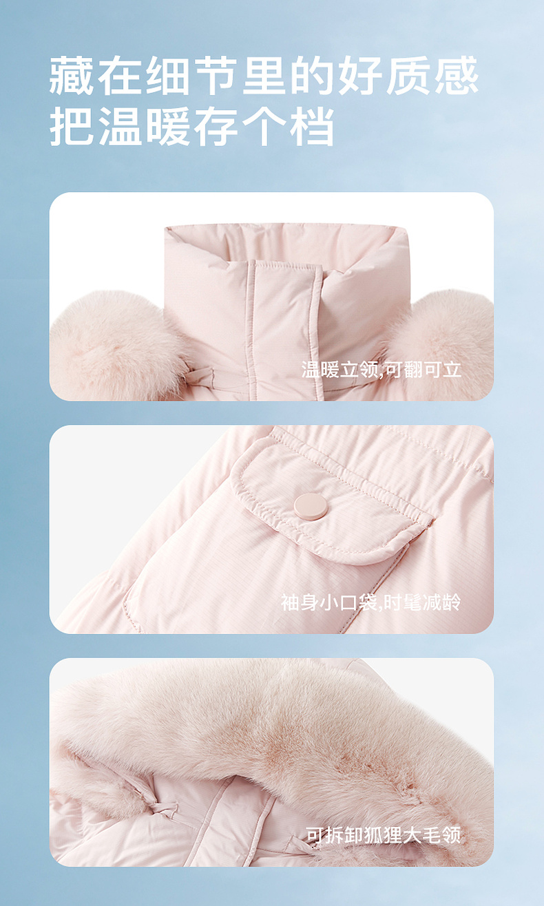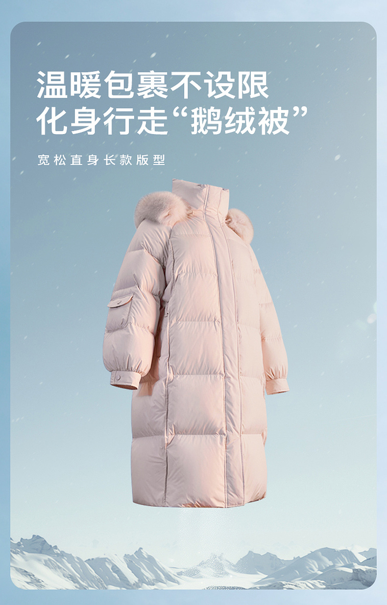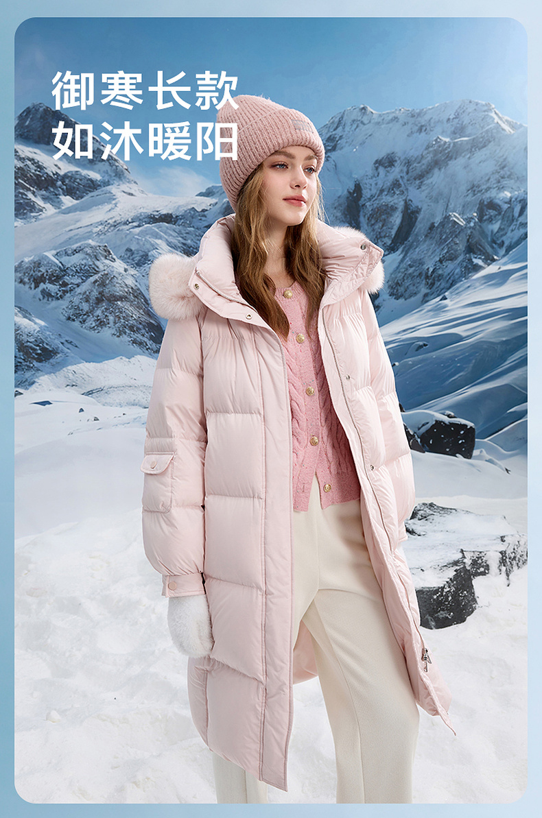 三彩2025冬季新款立领羽绒服狐狸毛领长款白鹅绒外套被子服休闲女