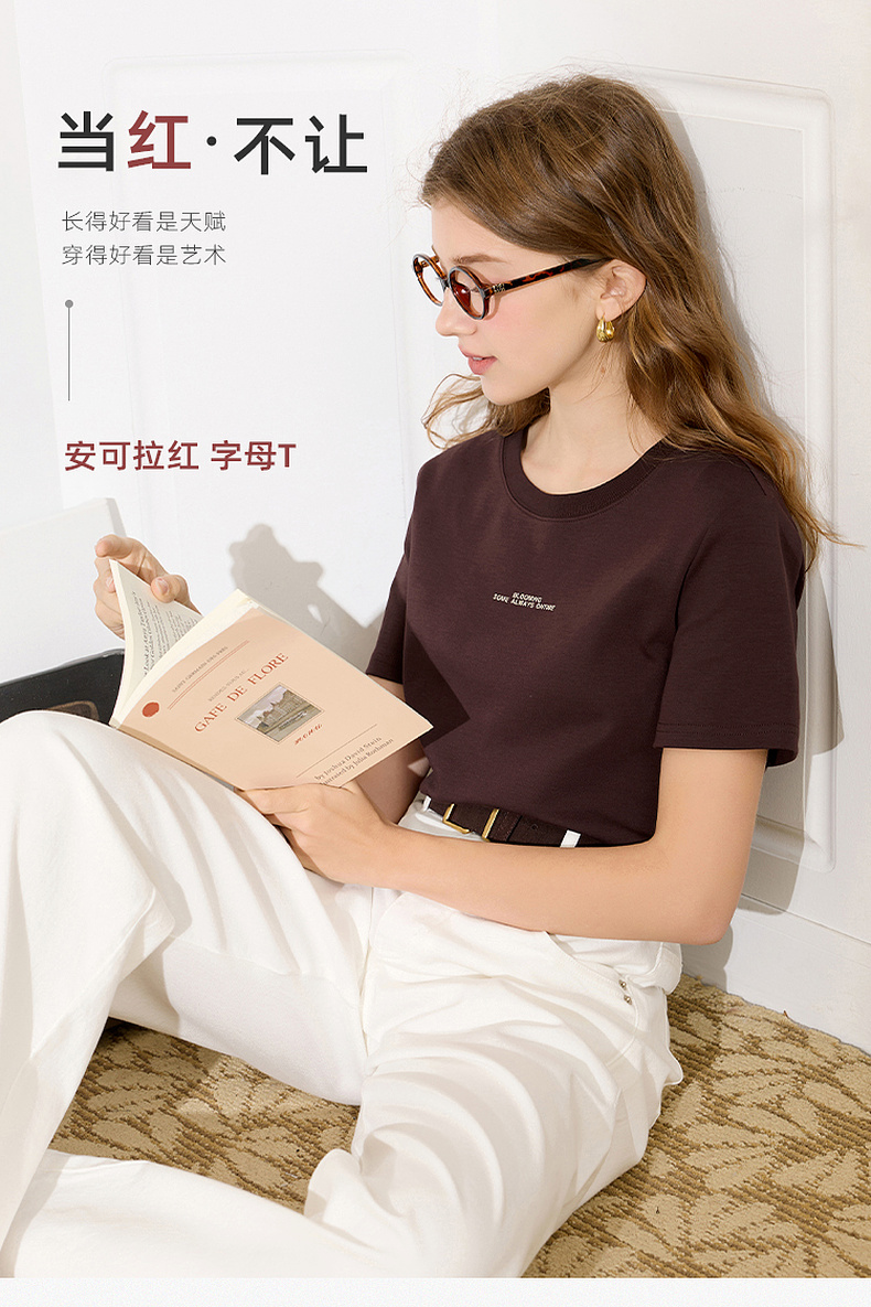 三彩2026春季新款字母印花T恤休闲正肩短袖圆领上衣打底套头M