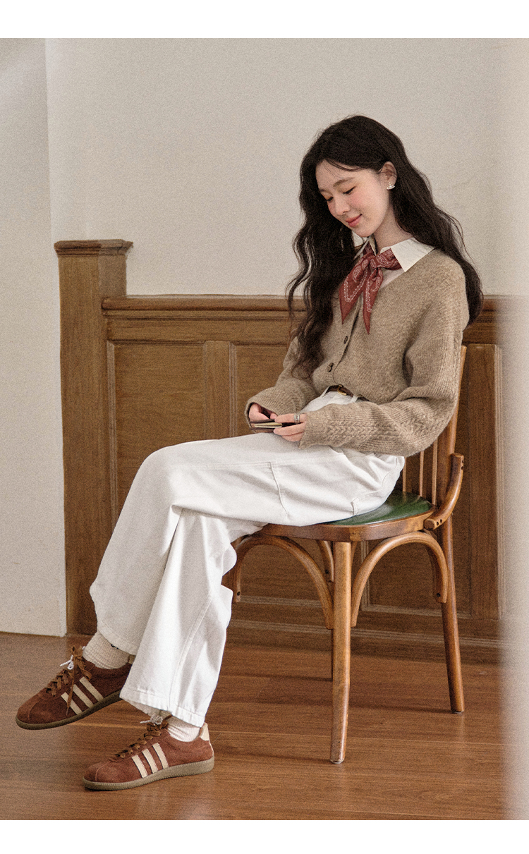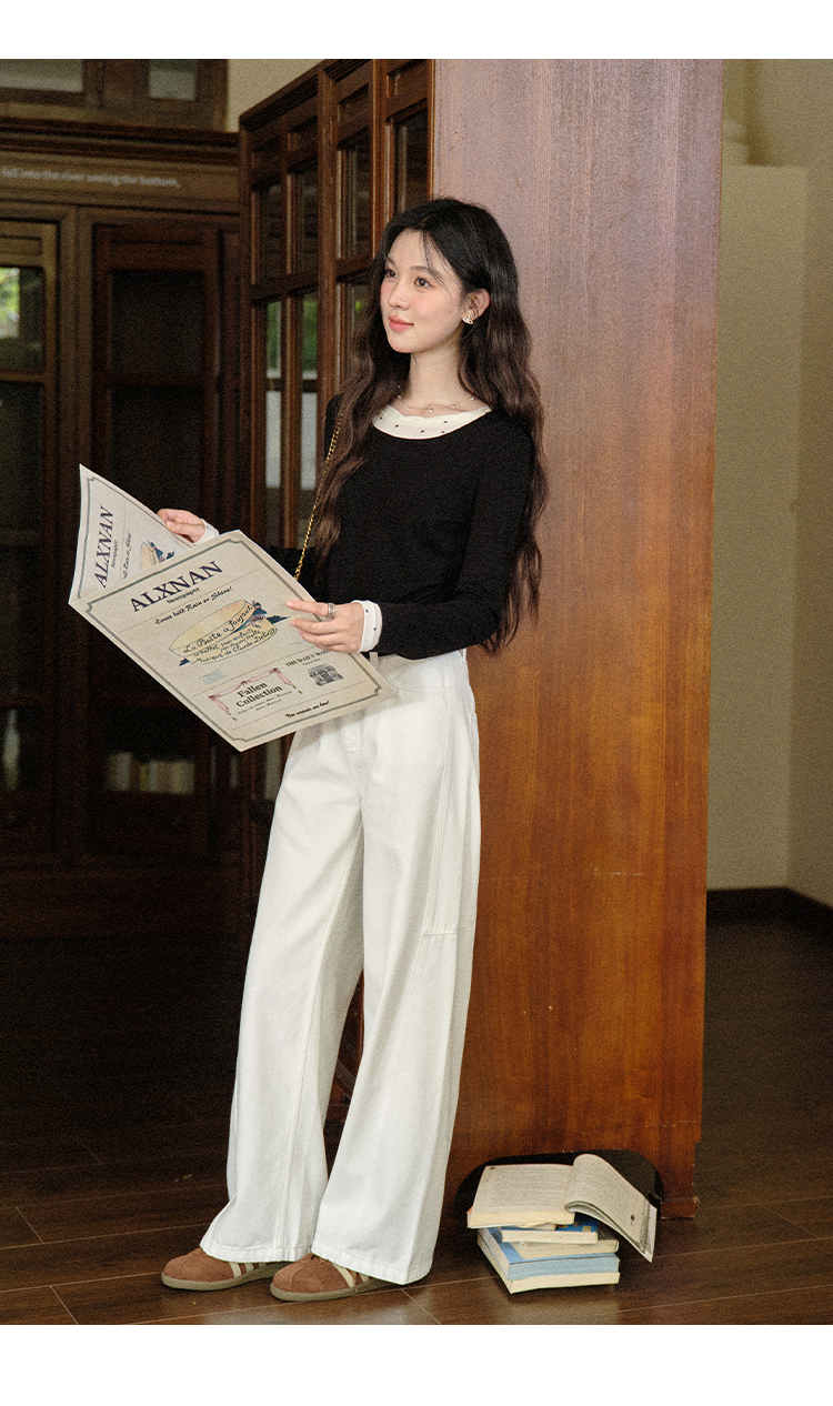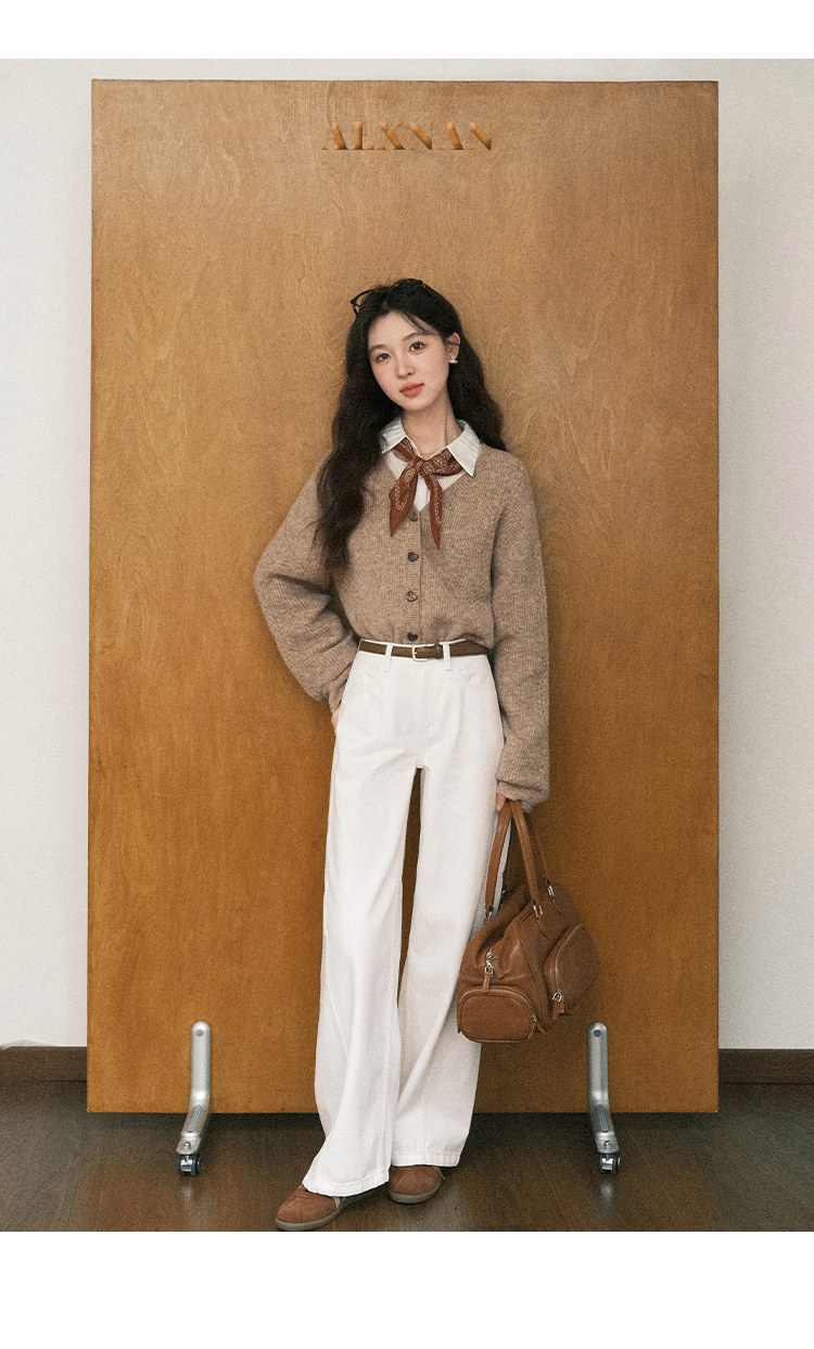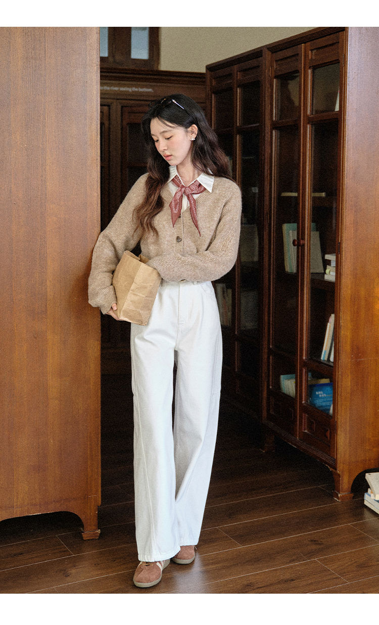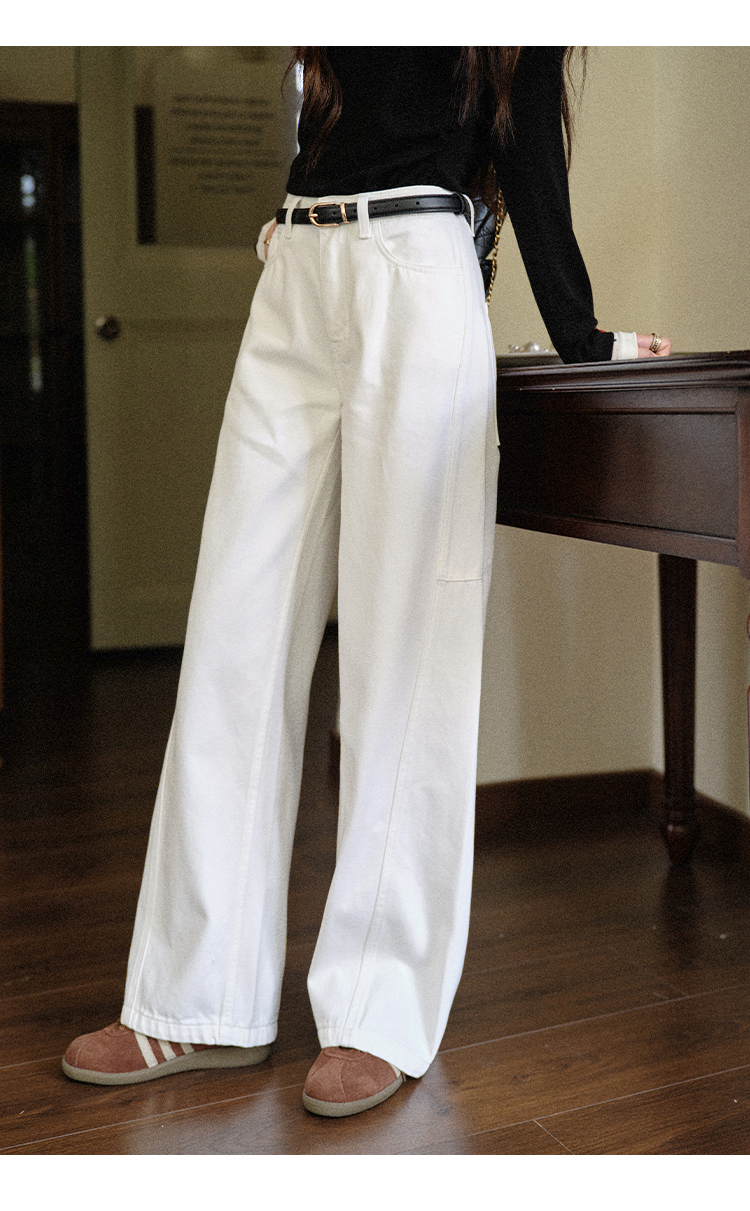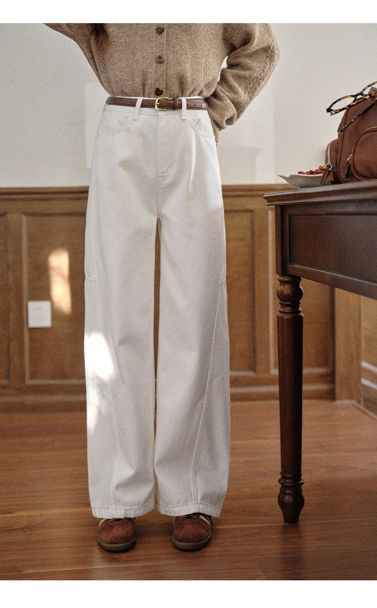 鹿向南「长腿搭子」米白色休闲牛仔裤女秋季新款阔腿直筒显瘦长裤