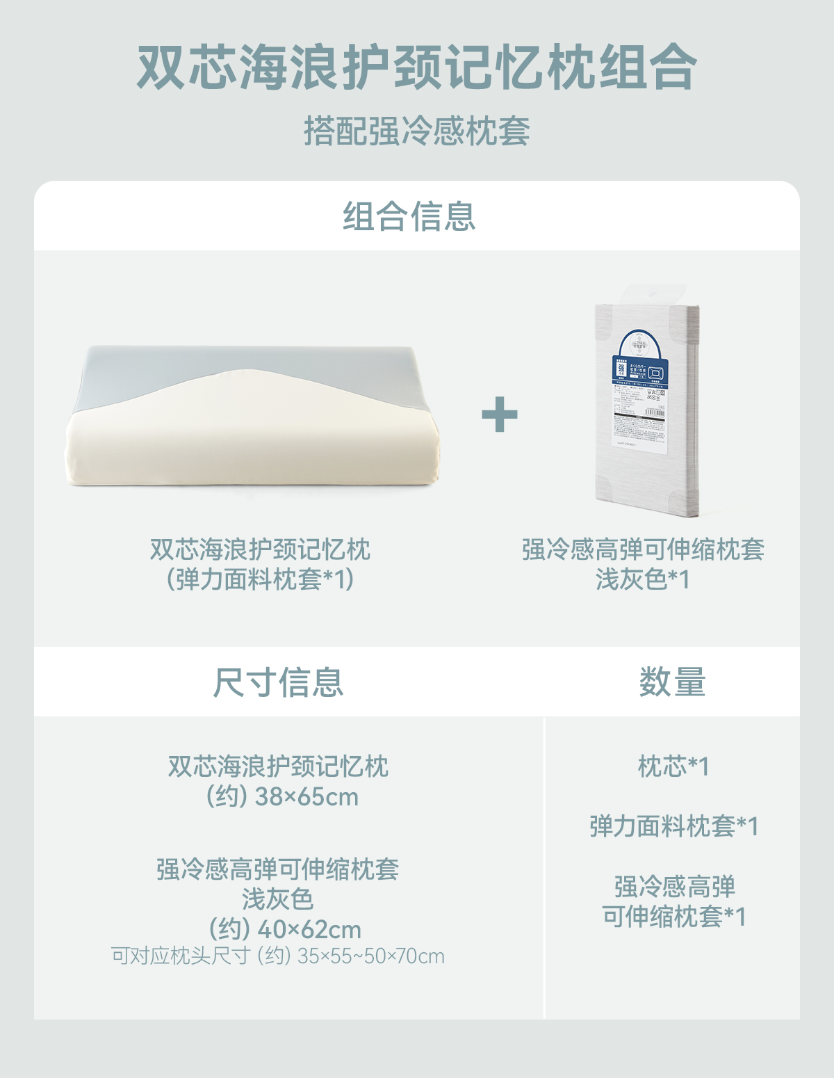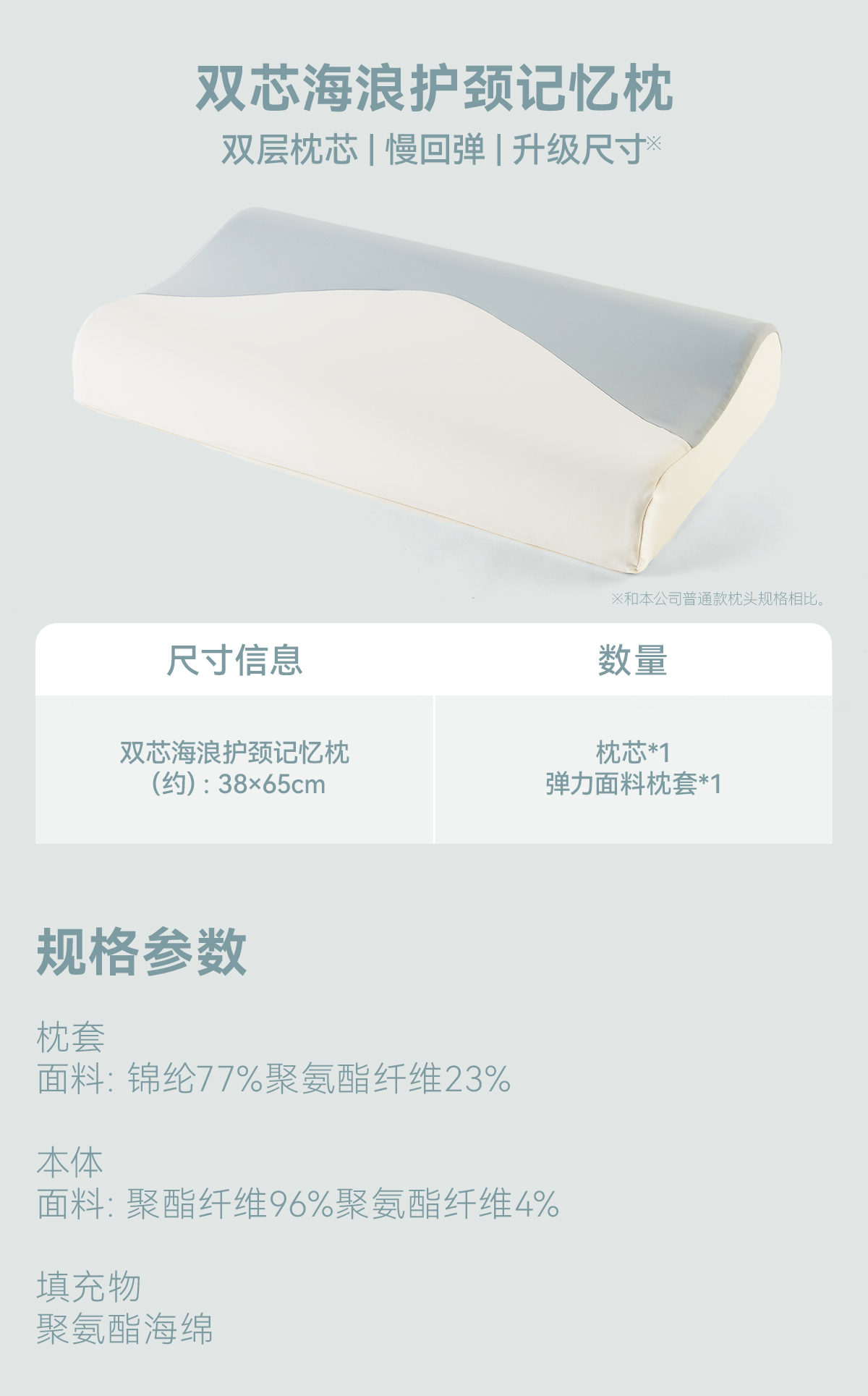 枕头 睡眠枕枕颈慢回弹双芯海浪护颈记忆枕 海浪枕 单只/ 海浪枕(含冷感枕套) 单只 约 65*38*11cm